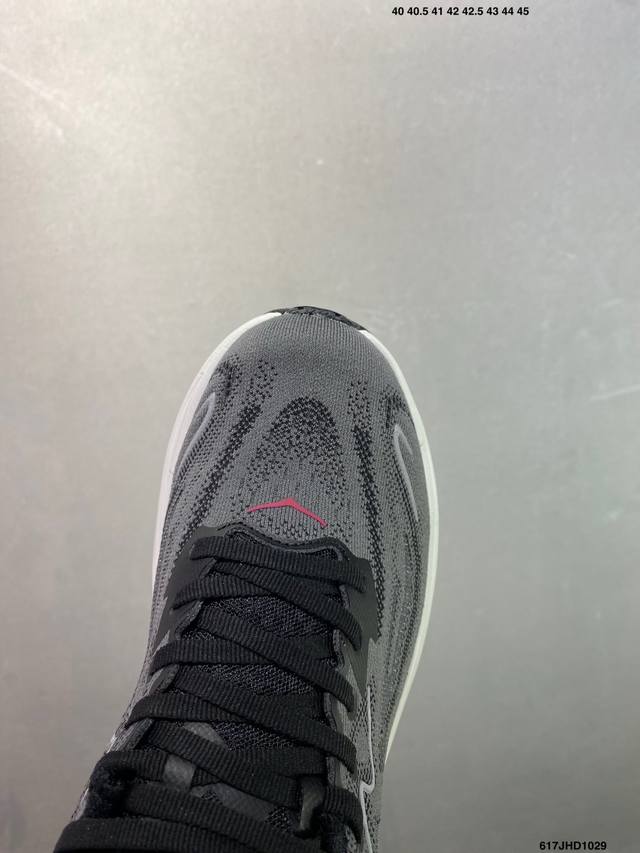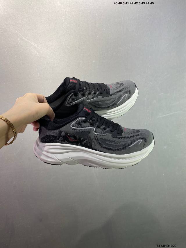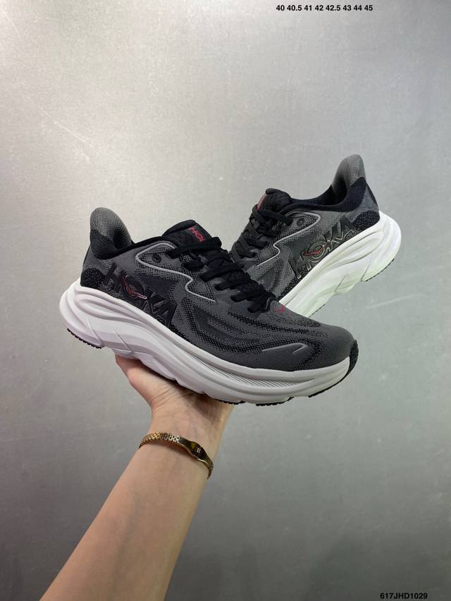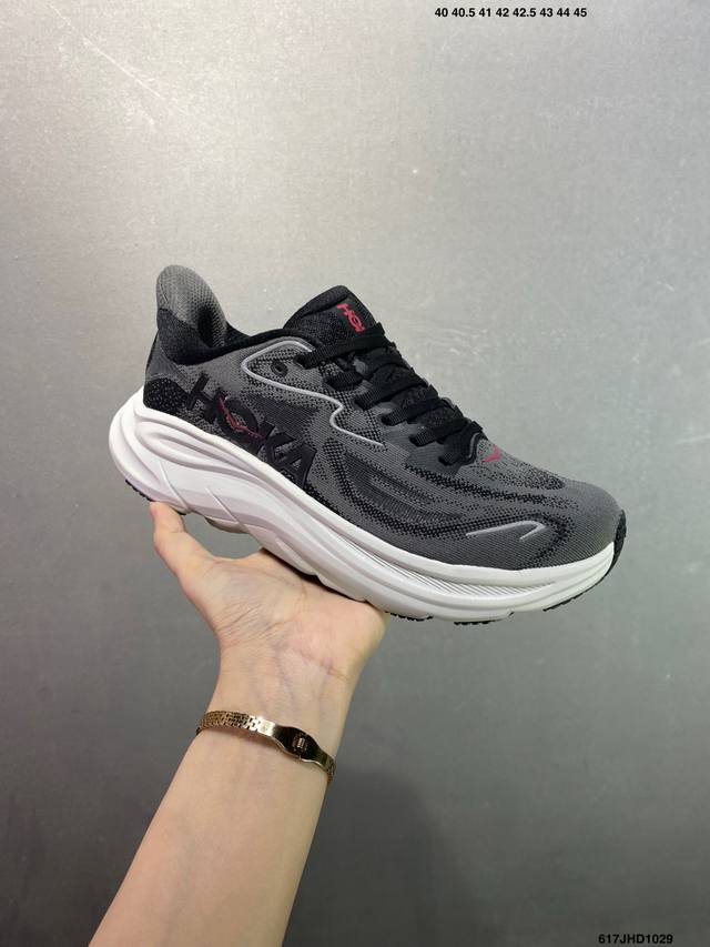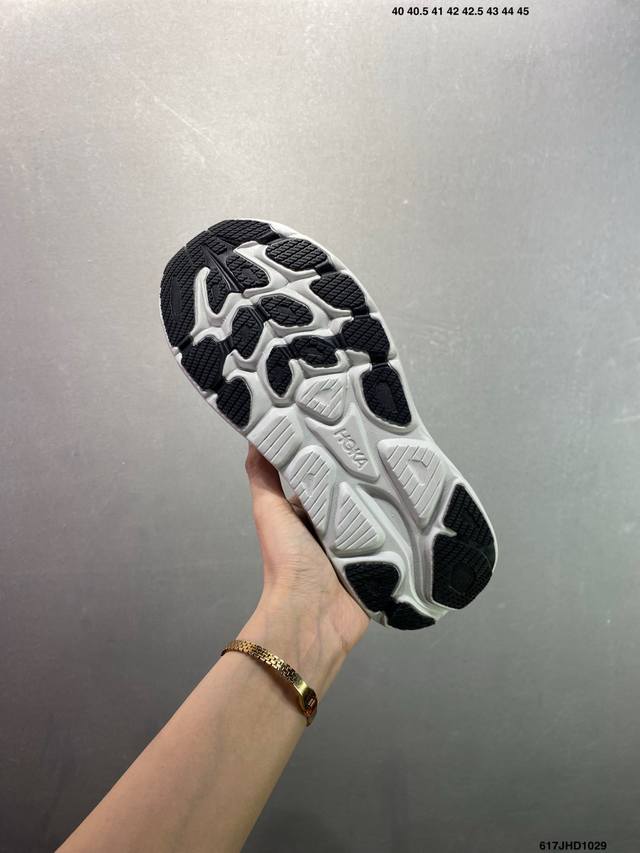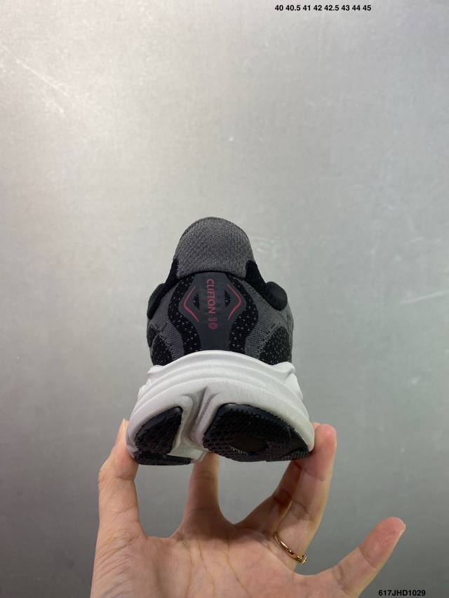 Hoka M Clifton 10 Lightweight Low-Top Outdoor Trail Running Shoes. Features include a lightweight, seamless upper, wide, elastic laces that are easy to wear and won't easily come undone, and a thin TPU overlay on the breathable upper. The forefoot and midfoot are reinforced with rubber. The EVA cushioning outsole uses Roll Balance technology to guide the runner's natural gait. Product Code: 1162030. Sizes: 40, 40.5, 41, 42, 42.5, 43, 44, 45. Code: 617Jhd1029.