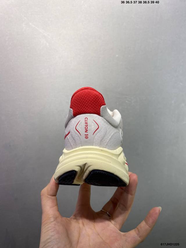 Hoka M Clifton 10 New Colorway Ddd This brand comes from the Maori language of New Zealand. Hoka means earth, and One One means to fly, so together it means flying over the horizon. One One is not pronounced "wanwan," but "onni onni." Hoka's experience in ultra-thick midsoles has put it ahead of other manufacturers. Their running shoes, with their advantages of cushioning and lightweight design, are favored by many runners. The slightly upturned toe design provides responsiveness and toe protection. It uses a classic shoe shape with new details, resulting in a simple yet sophisticated overall look. The outsole features a durable, wear-resistant material and a rich, non-slip tread pattern, providing stable grip and preventing slippage. Product Code: 1162030 Sizes: 36, 36.5, 37, 38, 38.5, 39, 40, 40.5, 41, 42, 42.5, 43, 44, 45 ID: 617Jhd1225