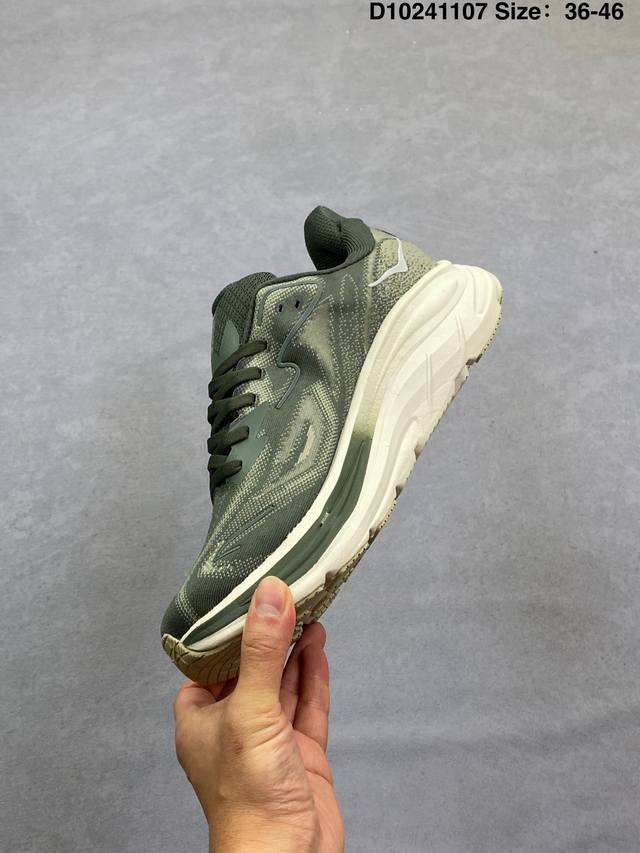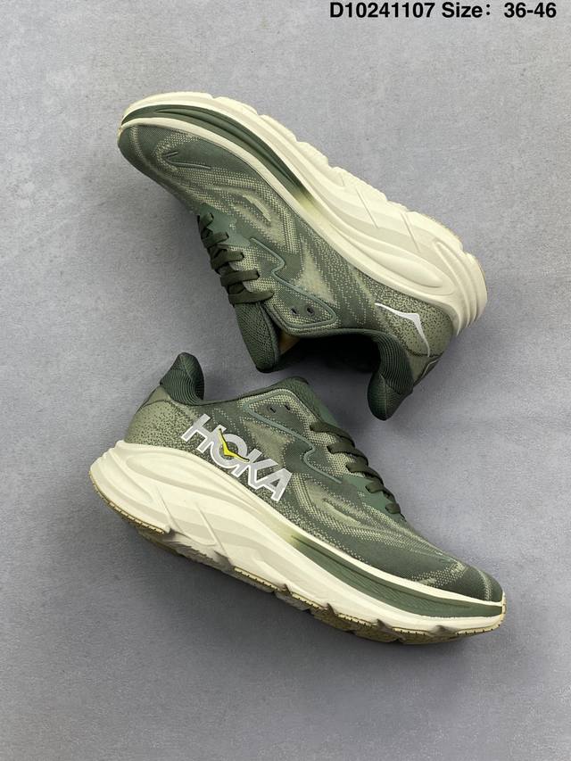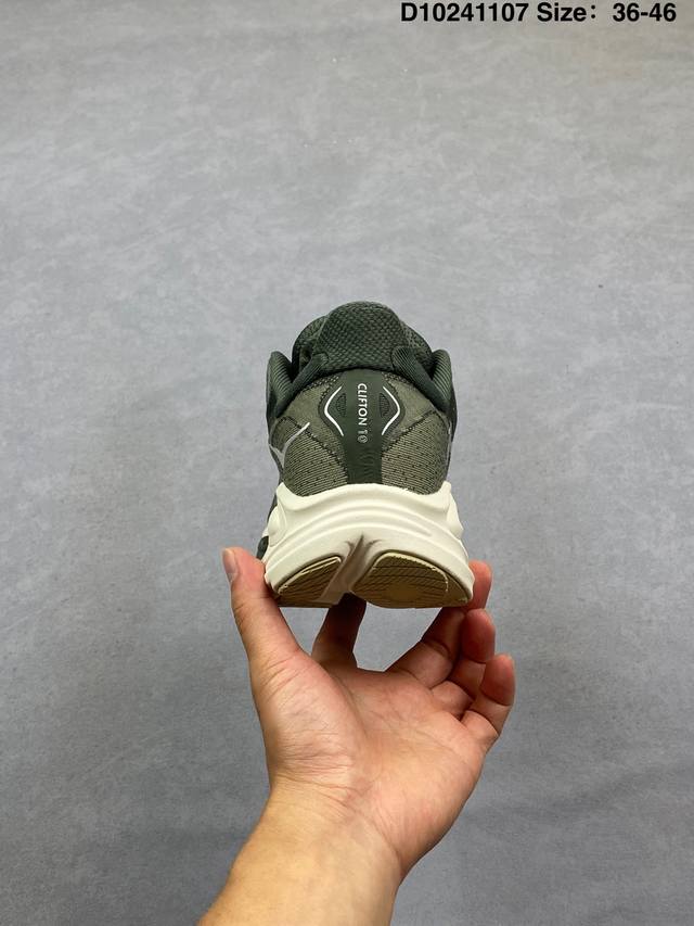 Hoka men's and women's shoes in half sizes, featuring a breathable knitted engineered upper, a lightweight high-elasticity foam midsole, an embedded Ortholite hybrid recycled insole, and an external wear-resistant and non-slip rubber module for enhanced shock absorption. The Hoka One One Clifton 10 Low, a low-top, thick-soled, lightweight, casual running shoe from the emerging American running shoe brand Hoka, is available in sizes 1162030 DDD. Type: Men's and Women's Shoes. Sizes: 36, 36.5, 37, 38, 38.5, 39, 40, 40.5, 41, 42, 42.5, 43, 44, 45. Code: D10241107 .