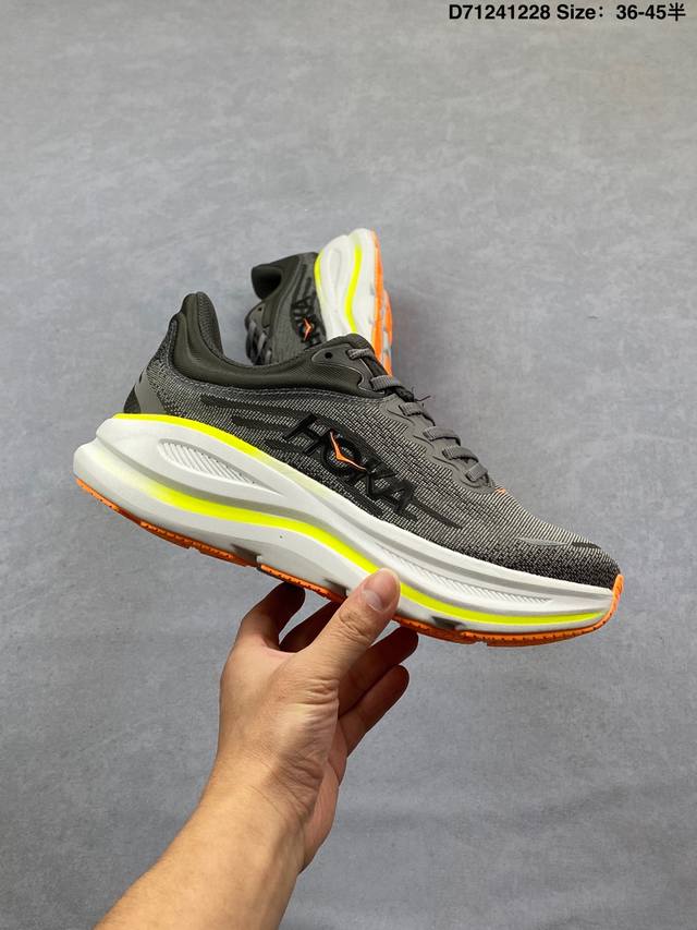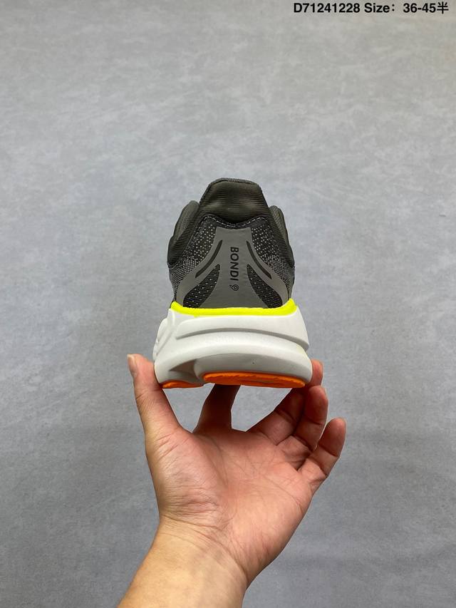 Hoka One One Bondi 9: Comfortable, Versatile, Durable, Lightweight, Low-Top Running Shoes for Men and Women. The most significant change in the Bondi 9 is its sole unit. The already solid and reliable sole has become much thicker, almost "giant," making it an ideal choice for consumers who prefer ultra-thick soles. At Hoka's new season showcase, the Bondi 9 debuted with a completely new look, featuring not only an upgraded appearance but also significantly improved performance as claimed by the company. In terms of weight, for example, a US men's size 10 is almost an ounce lighter than its predecessor, achieving a breakthrough in lightweight design. This shoe features Hoka's maximum cushioning midsole, increasing the sole height by two millimeters, and is reinforced with supercritical foam