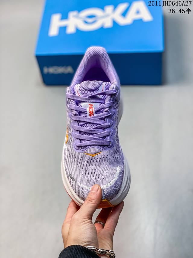 Hoka One One Clifton 9 Low, a low-top, platform, lightweight, casual running shoe from the emerging American running shoe brand Hoka One One. Sizes: 36, 36.5, 37, 38, 38.5, 39, 40, 40.5, 41, 42, 42.5, 43, 44, 44.5, 45. (Note: The last part, "11Jhd646A27," appears to be an unrelated product label and has been omitted from the translation.)