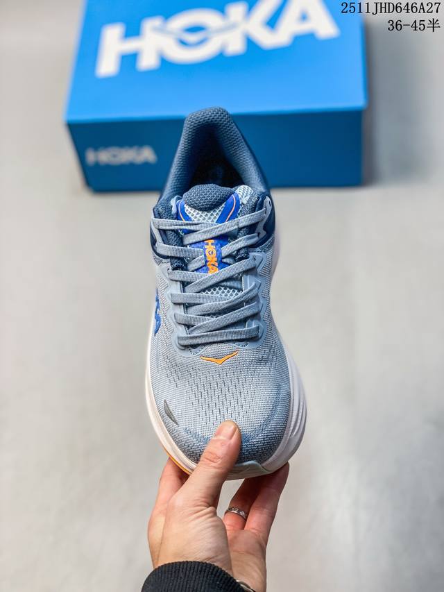 Hoka One One Clifton 9 Low, a low-top, platform, lightweight, casual running shoe from the emerging American running shoe brand Hoka One One. Sizes: 36, 36.5, 37, 38, 38.5, 39, 40, 40.5, 41, 42, 42.5, 43, 44, 44.5, 45. (Note: The last part, "11Jhd646A27," appears to be an unrelated product label and has been omitted from the translation.)