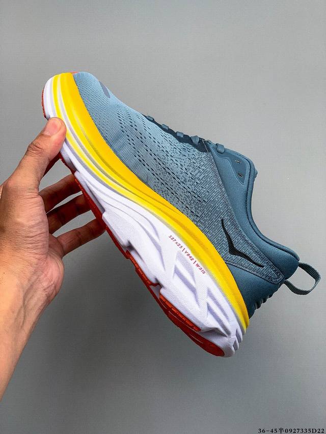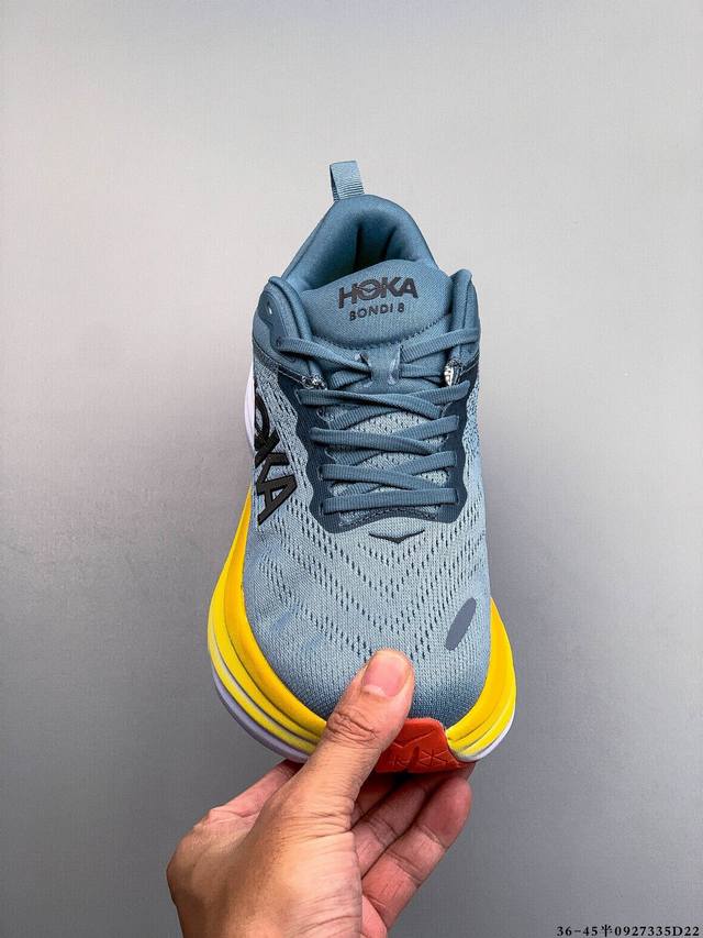 Hoka One One M Bondi 8 Low-Top Running ShoeThe Bondi takes a bold step forward this season, redesigned with softer, lighter foam and an all-new, extended heel geometry. The rear crash pad features a rolling effect, providing an incredibly soft and balanced ride from heel strike to forefoot transition.
