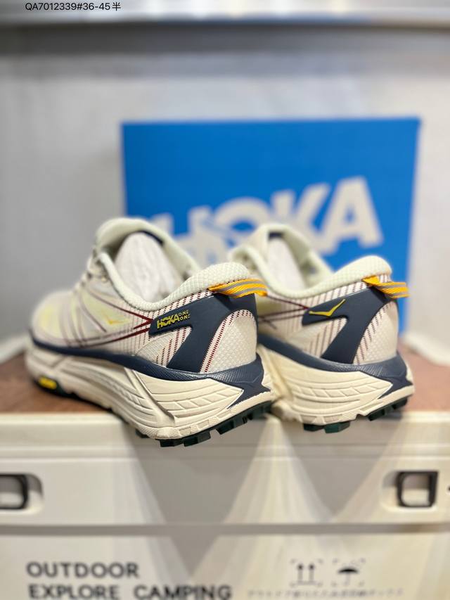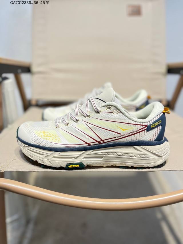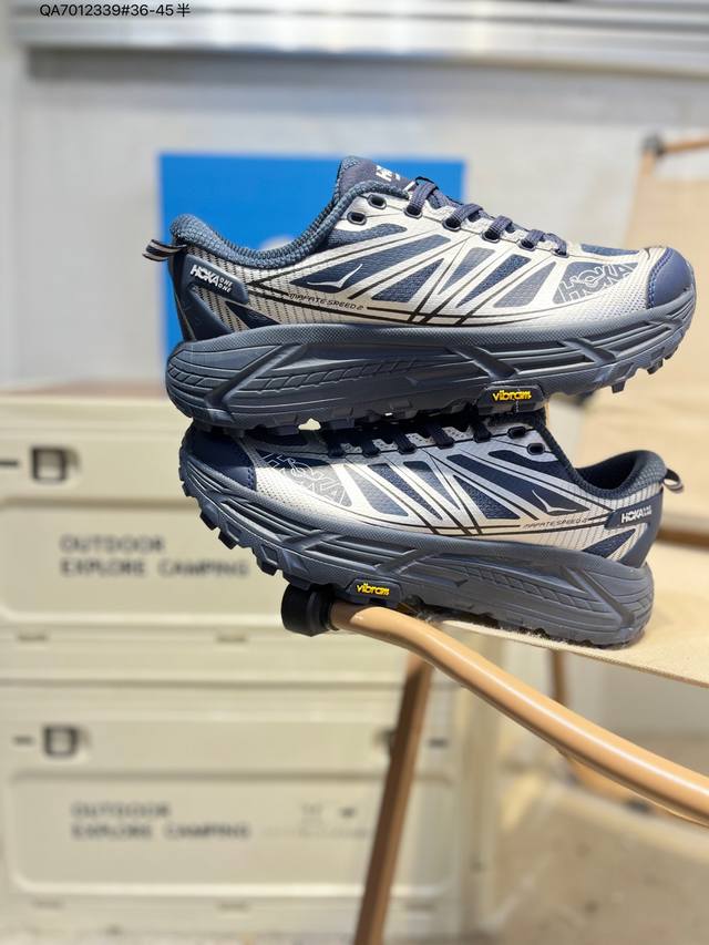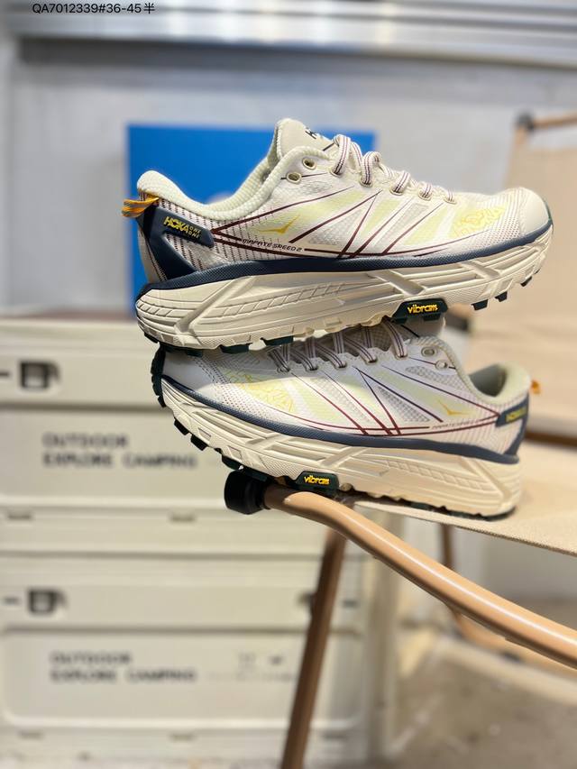 Hoka One One Mafate Speed 2 Low Lightweight Low-top Outdoor Trail Running Shoes. Features include a lightweight, seamless upper, wide, elastic laces that are easy to wear and won't easily come undone, a thin TPU overlay on a breathable upper, a widened rubber outsole in the forefoot and midfoot, EVA cushioning, and Rolling Balance technology to guide the runner's natural gait. (1126851 Qa7012339# 36-45 half size)