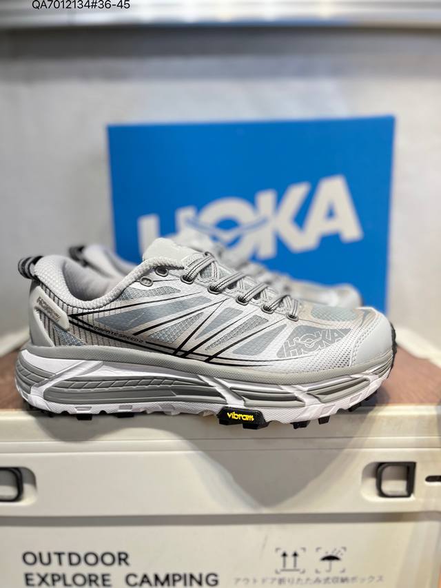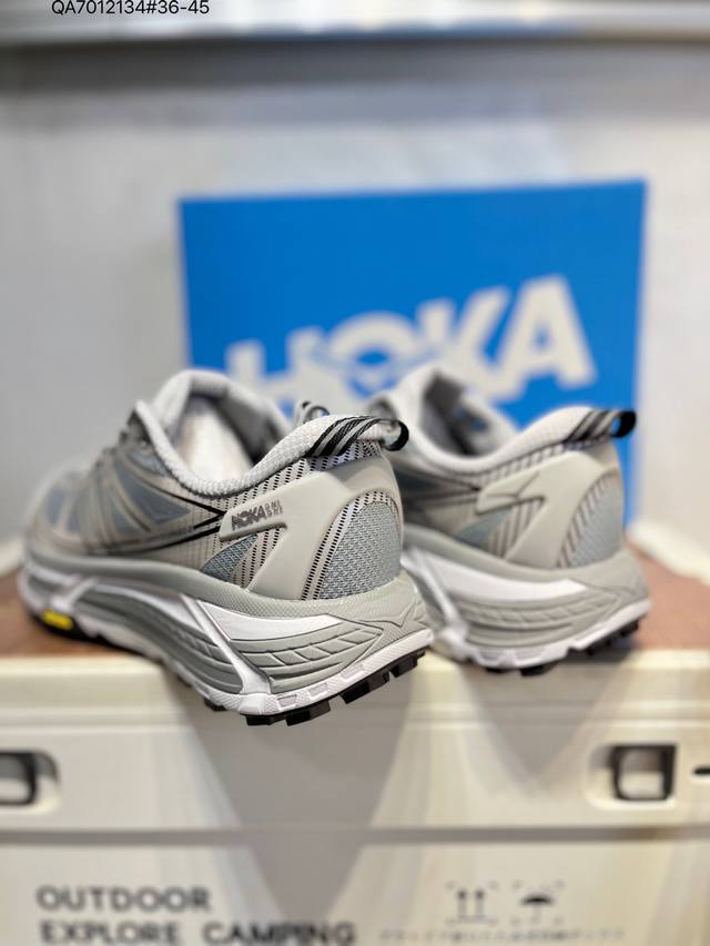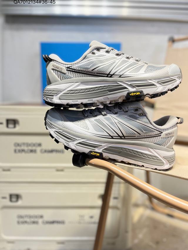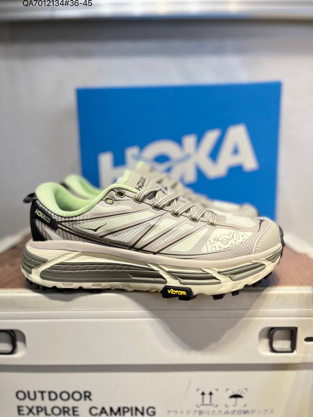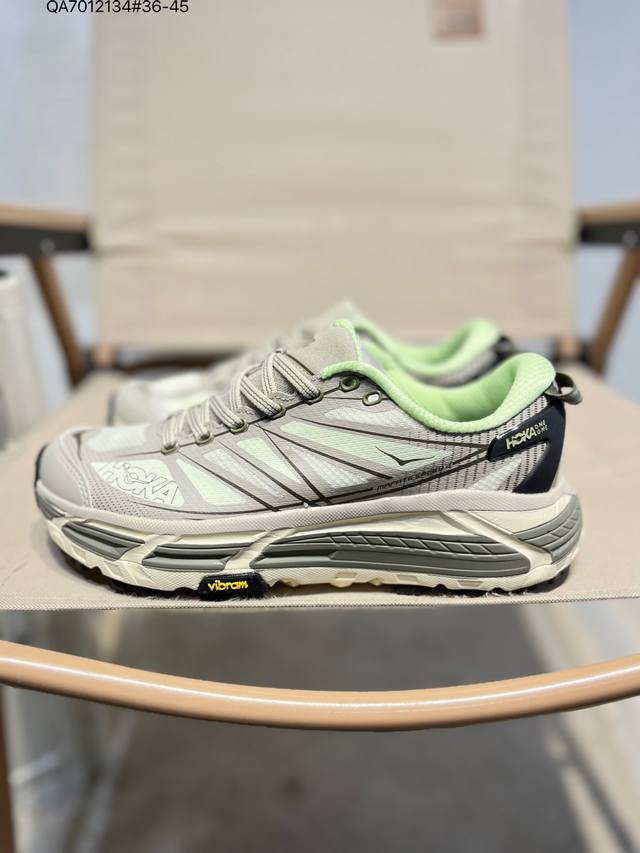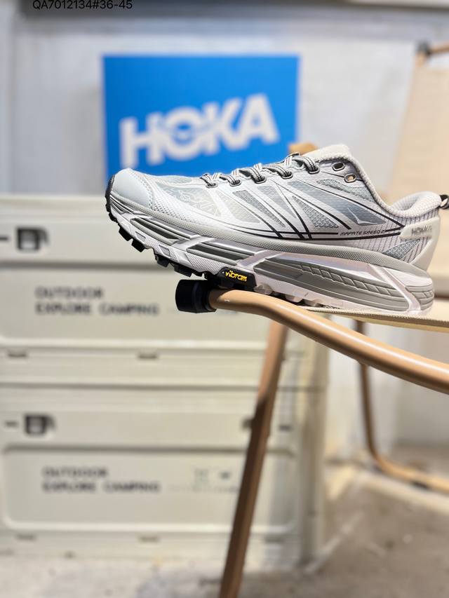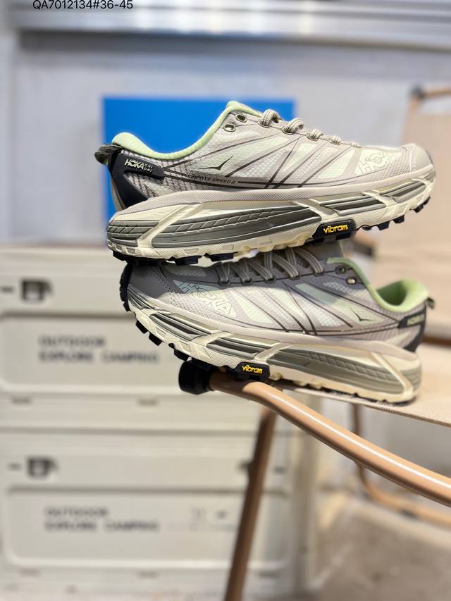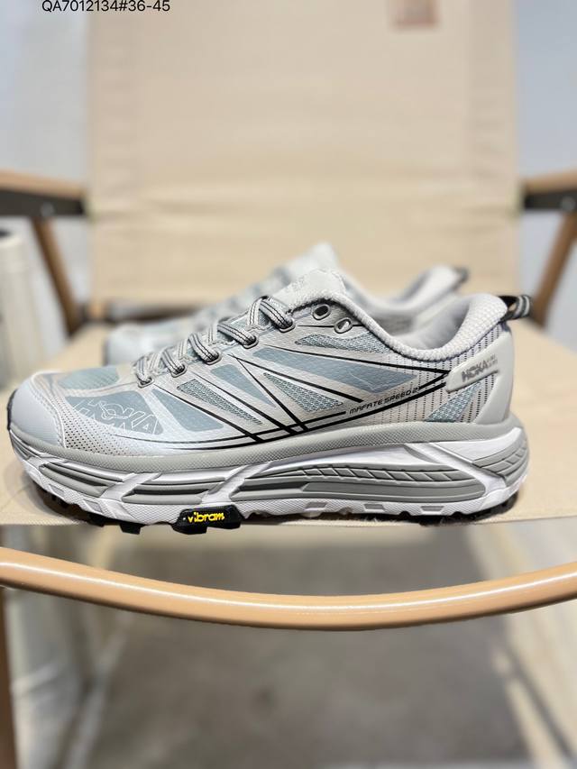 Hoka One One Mafate Speed 2 Low Lightweight Low-top Outdoor Trail Running Shoes. Features include a lightweight, seamless upper, wide, elastic laces that are durable and won't easily come undone, a thin TPU overlay on a breathable upper, a widened rubber outsole with EVA cushioning, and Roll Balance technology to guide the runner's natural gait. (1126851 Qa7012134#36-45