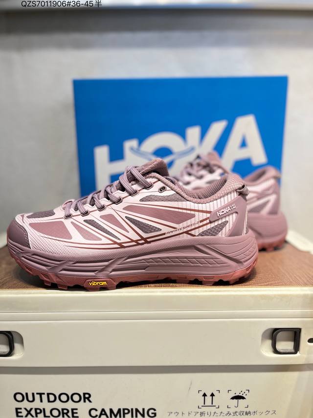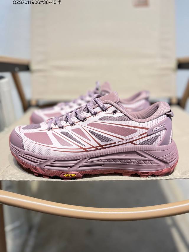 Hoka One One Mafate Speed 2 Low Lightweight Low-top Outdoor Trail Running Shoes. These lightweight trail running shoes feature a lightweight, seamless upper with wide, elastic laces that are long-lasting and won't easily come undone. Thin TPU pads are applied to the breathable upper. The design is inspired by the Alps, with bright colors and blue tones covering the silhouette. The forefoot and midfoot are widened, and the rubber outsole features EVA cushioning. Rolling Balance technology guides the runner's natural gait. Product Code: 1126851 Qzs701 6# 36-45.5