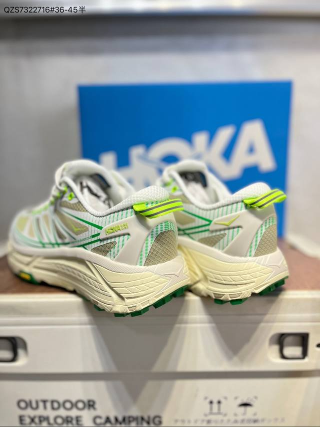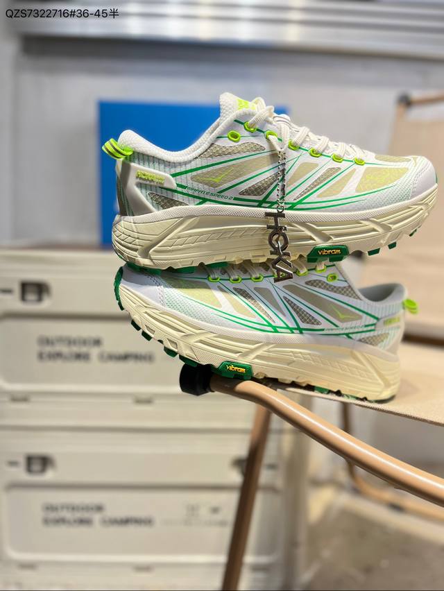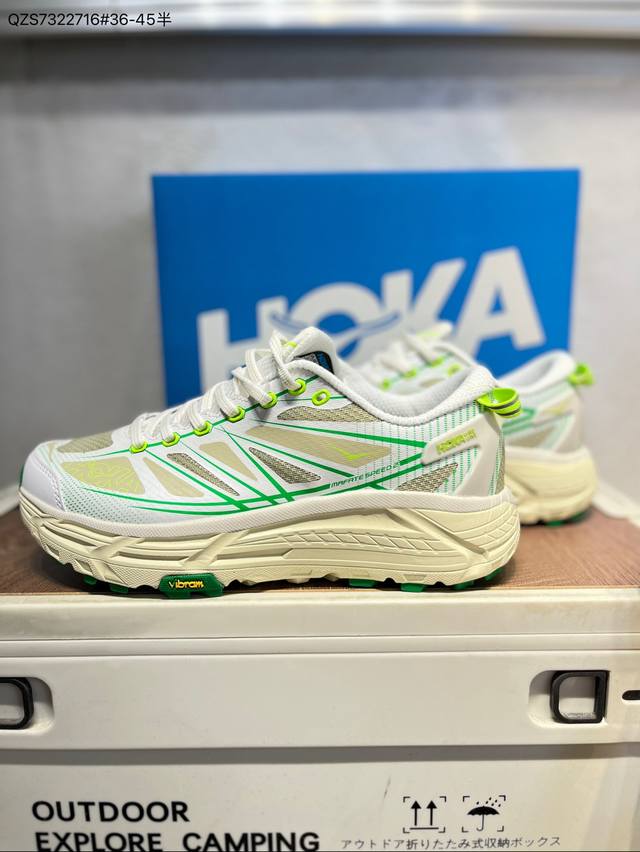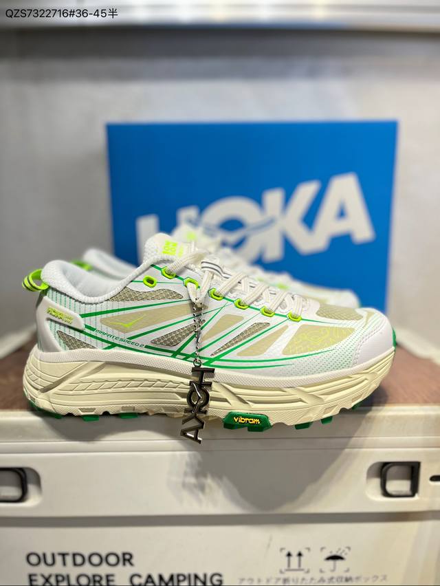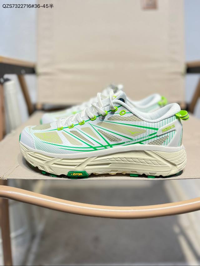 Hoka One One Mafate Speed 2 Low Lightweight Low-top Outdoor Trail Running Shoes. Features include a lightweight, seamless upper, wide, elastic laces that are easy to wear and won't easily come undone, a thin TPU overlay on a breathable upper, a widened rubber outsole in the forefoot and midfoot, EVA cushioning, and Roll Balance technology to guide the runner's natural gait. (1126851
