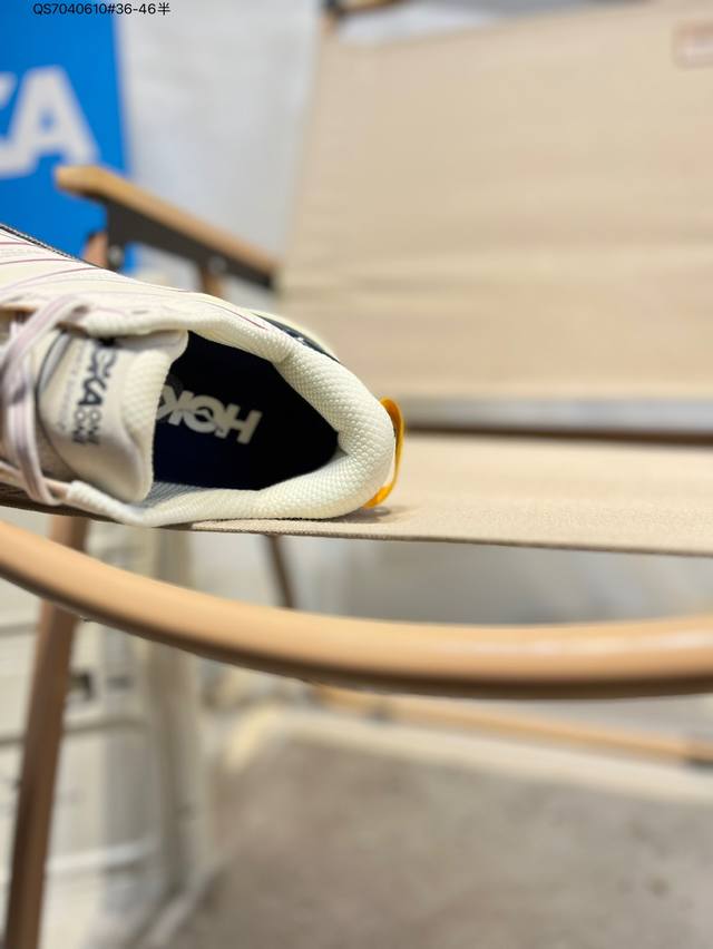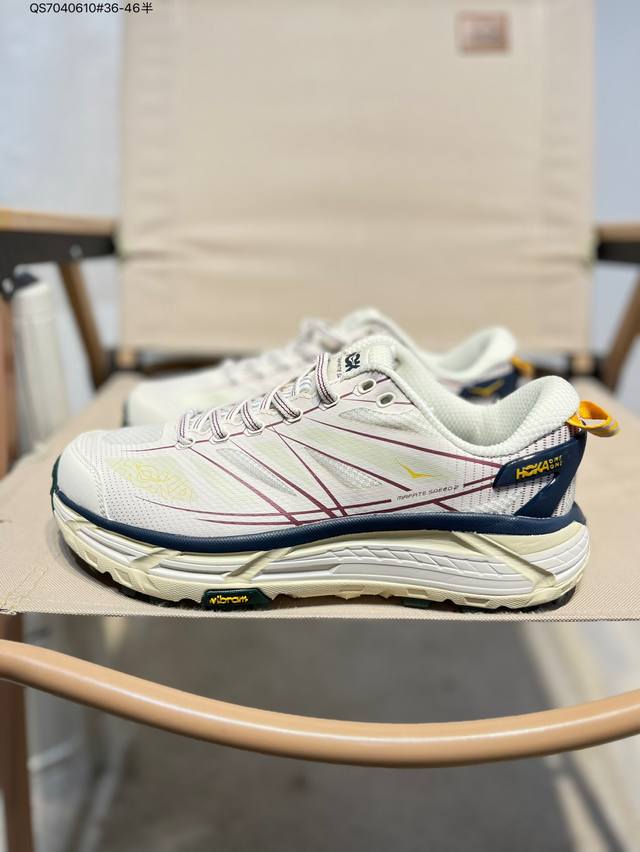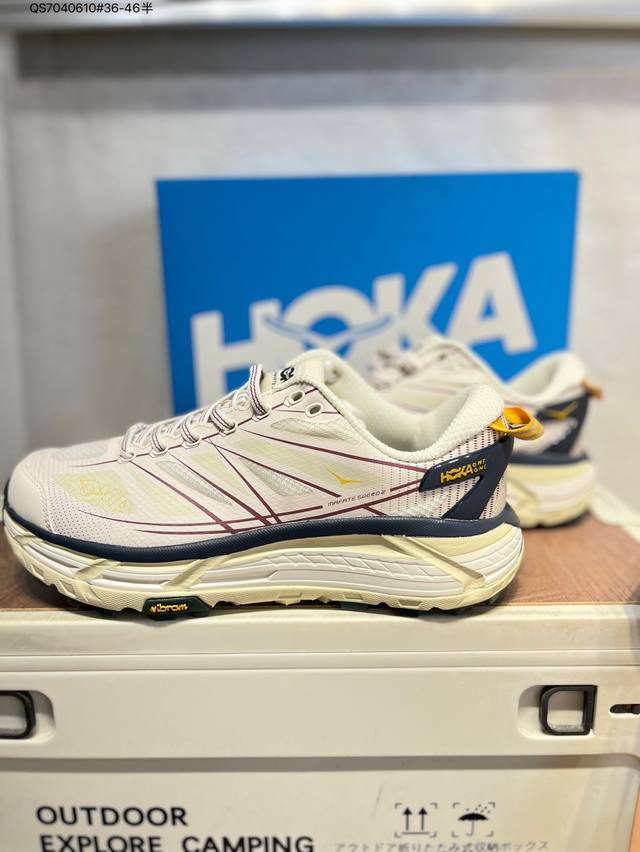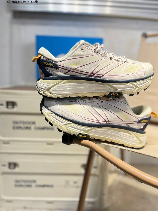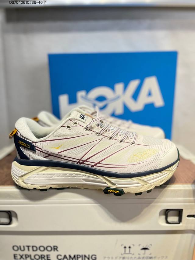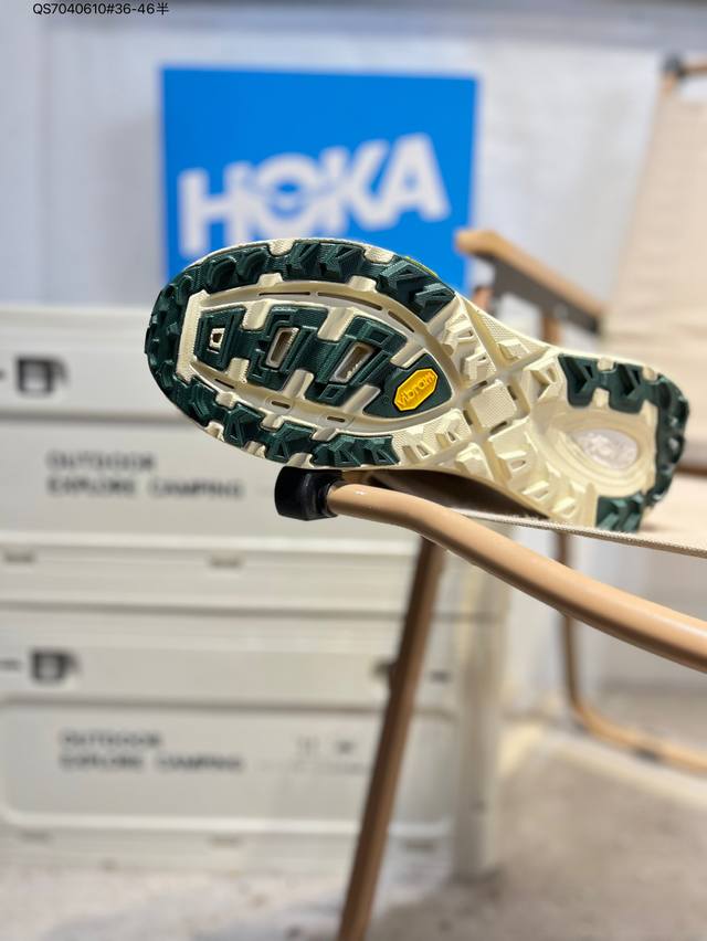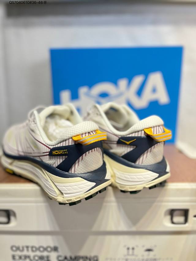 The Hoka pedigree thick sole provides shock absorption and protection during fast descents.