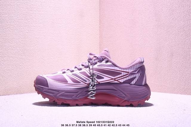 Hoka One One Mafate Speed 2 Versatile Comfortable Fabric Synthetic Leather Shock Absorbent Anti-slip Wear-resistant Breathable Support Lightweight Rebound Low-top Running Shoes Unisex Purple Pink