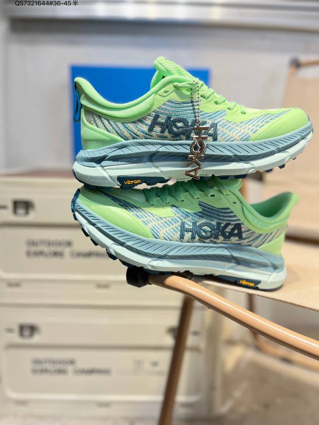 Hoka One One Men's and Women's Running Shoes, Mafate Speed 4 Series. The Mafate Speed 4 is an excellent choice for trails where comfort and versatility are essential. The upper features a jacquard mesh thick enough to resist dirt without requiring any additional overlays. Above the toes is a breathable, stretchy mesh that allows the upper to expand to fit your foot. Below this, the profly midsole places lightweight foam closest to your foot, enhancing comfort when running on hard surfaces, while the lower layer is sturdy enough to ride on fairly large rocks and protect your sole. The shoe still shines when you enter steep or muddy terrain. The outsole has been redesigned with more rubber underfoot. Each lug has three different layers, providing plenty of sharp edges for a tight grip on the ground. Product Code: 1131056 Qs7321644#36-45 Half DDD