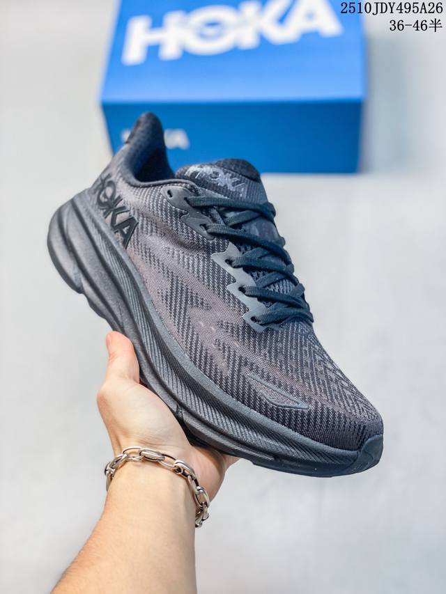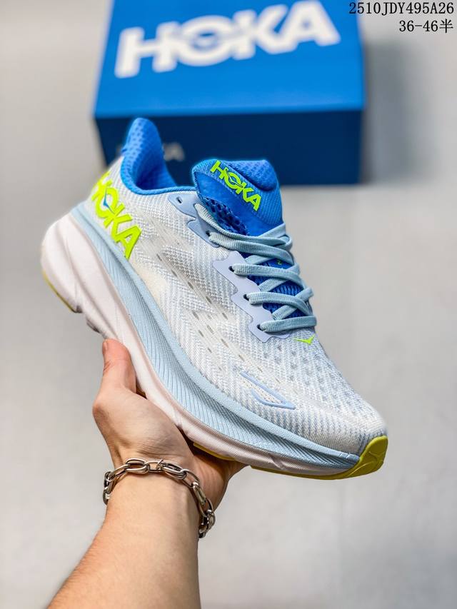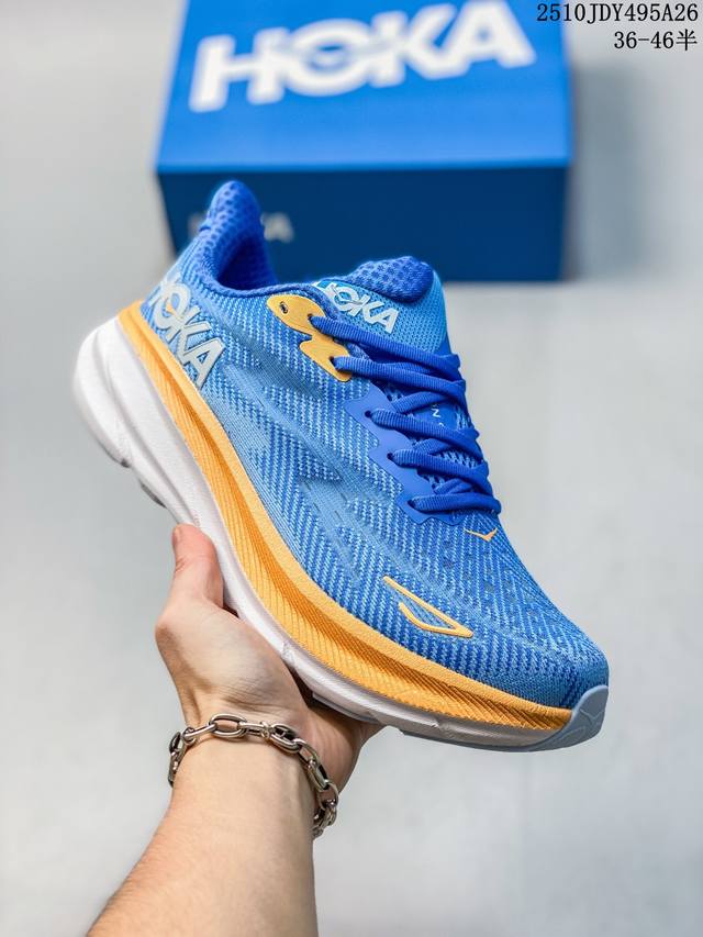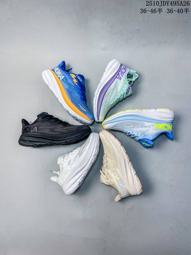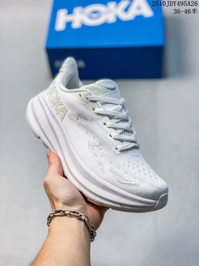 Hoka One One upgraded Clifton 9, a lightweight cushioned running shoe for men and women. This time, the Clifton 9 is thicker and lighter. Exceptional feel, thicker, lighter, and more stable. As a classic Hoka road running shoe, the Clifton series has garnered much attention since its inception, becoming a top choice in the Hoka road running family through word-of-mouth recommendations from runners. This time, the Clifton 9 upgrades upon its lightweight cushioning, with a 3mm thicker midsole than its predecessor, while reducing the overall weight by 4g. The Clifton 9 uses a new foam midsole, which is softer and enhances rebound performance, providing a smoother and more stable feel for runners of all levels, and offering more comprehensive cushioning protection, ensuring strong support and propulsion with every step. In addition, the Clifton 9 features an upgraded upper with a lightweight, breathable knitted mesh and a softer, more secure tongue, enhancing the shoe's balance and durability, allowing runners to enjoy a more comfortable and comfortable running experience. Sizes: 36-46 (including half sizes). Code: 10Jdy495A26