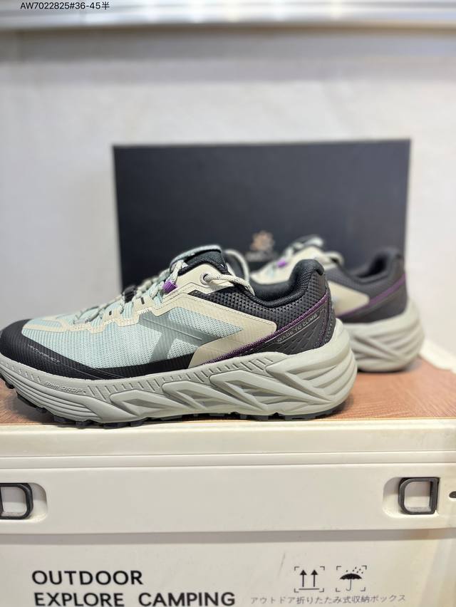 Boa Fit System allows for quick fine-tuning and precise fit via a dial. Vibram Megagrip Litebase outsole with a 125mm ultra-wide forefoot provides excellent grip, easily navigating steep slopes, slippery roads, and other complex mountain conditions.