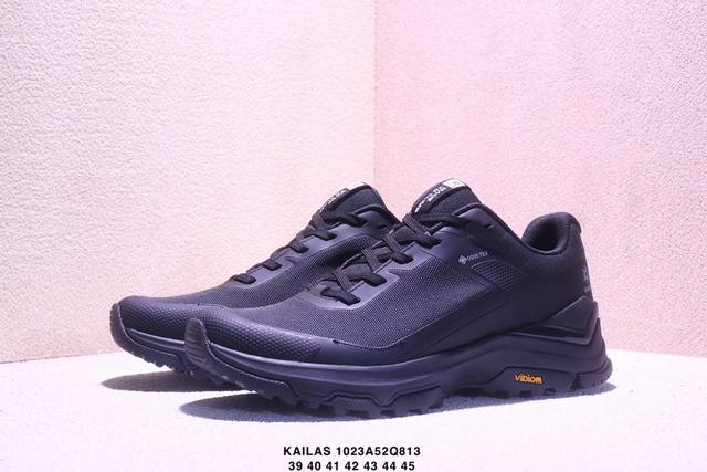 Kailas Fuga Du Boa Lightweight Hiking Shoes with Mesh TPU Shock Absorption, Anti-slip, Breathable, Supportive, and Rebounding Low-top for Superior Grip. The Boa Fitting System allows for quick and precise adjustments via a knob. The Vibram Megagrip Litebase Outsole features a 125mm ultra-wide forefoot for superior grip, easily handling steep slopes, slippery surfaces, and other challenging mountain terrain. The dual-density high-rebound midsole delivers powerful performance. The forefoot features a supercritical physical foam elastomer for 7% thicker elasticity, increasing rebound by 27%. The stable and balanced outer support elastomer material enhances forefoot stability. The TPU exoskeleton joint stabilization system provides rock-solid support for a more stable landing. (Xm1023Q813)