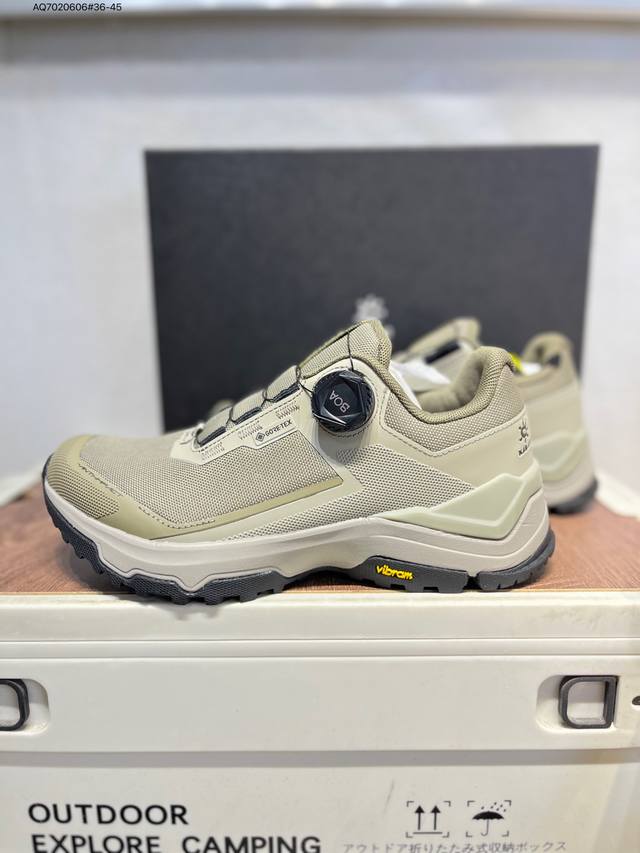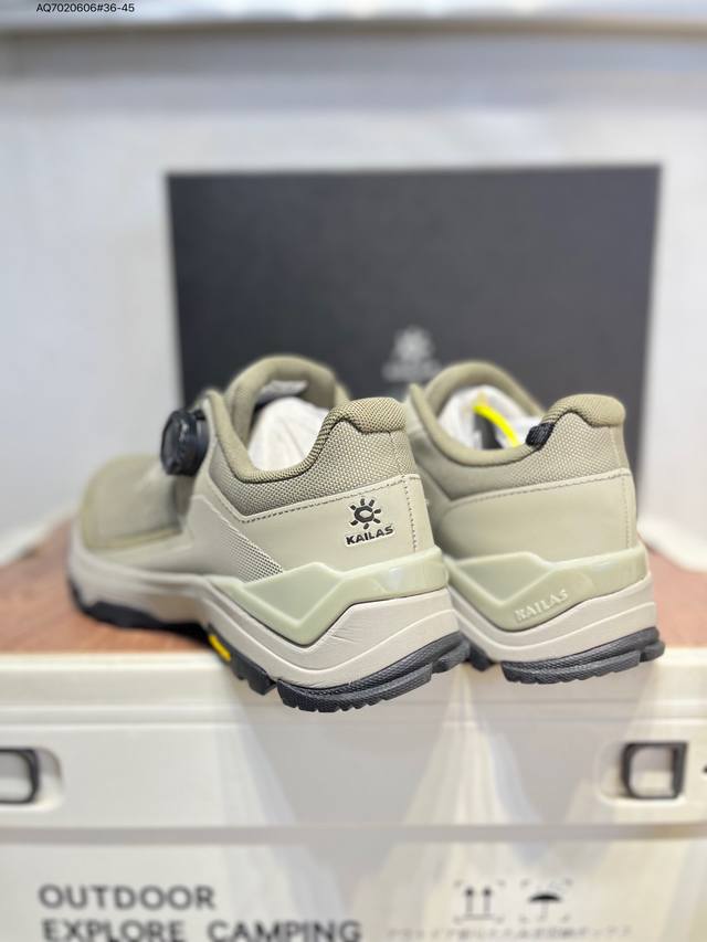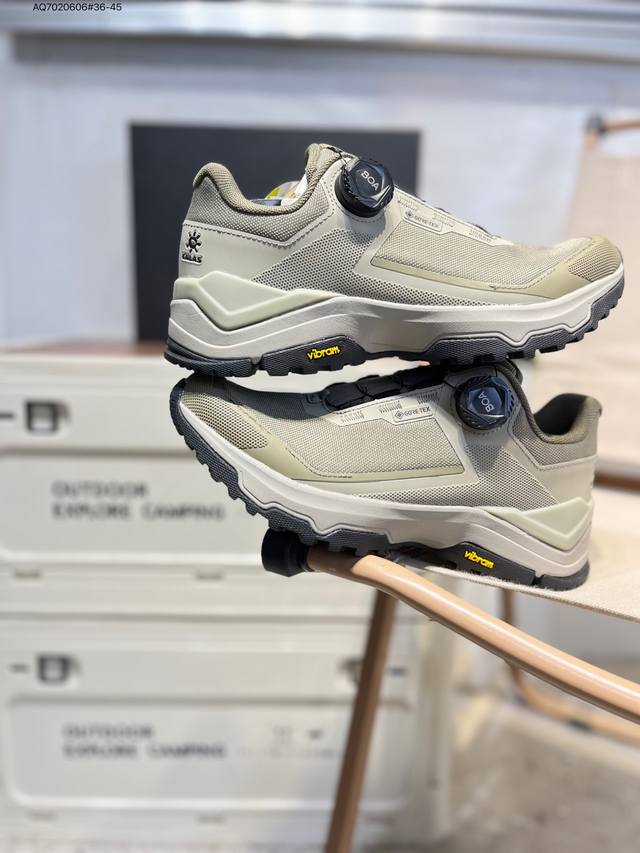 Kailas Gtx Boa DDD Outdoor Low-Top Waterproof Hiking Shoes, made by a major manufacturer. The upper uses Gore-Tex full-sock waterproof technology. The lacing system features a Boa dial for quick on and off. The Eco-Sport lightweight midsole reduces weight without sacrificing support. A 3D stability system provides strong torsional resistance and protection. The DDD Vibram outsole with a biomimetic serrated design offers slip resistance and durability. Aq7020606# 36-45 DDD