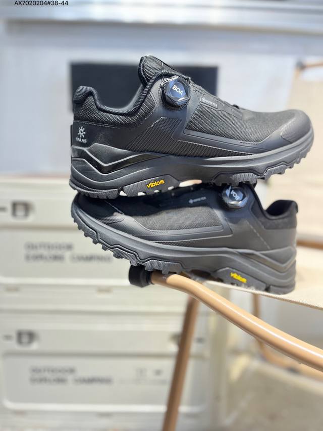 Kailas Gtx Boa DDD Outdoor Low-Top Waterproof Hiking Shoes, made by a major manufacturer. The upper features Gore-Tex full-sock waterproof technology. The lacing system uses a Boa dial for quick on and off. The Eco-Sport lightweight midsole reduces weight without sacrificing support. A 3D stability system provides strong torsional resistance and protection. The DDD Vibram outsole with a biomimetic serrated design offers slip resistance and durability. Ks2432138 Ax70 4# 38-44 DDD
