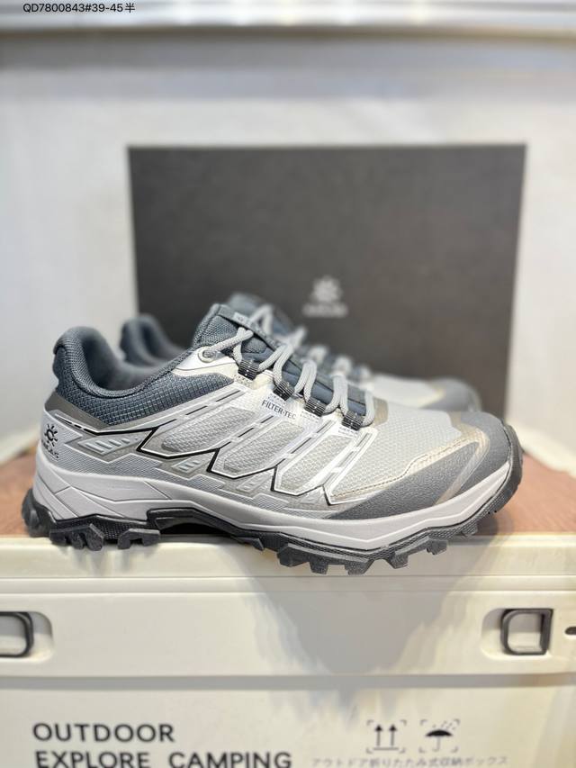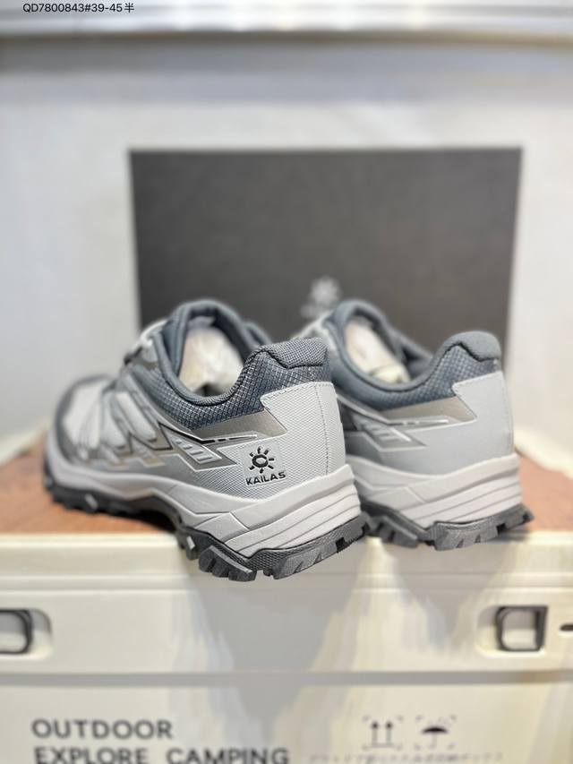Kailas Jieshan Outdoor High-Top Waterproof Hiking Shoes, manufactured by a major company. The upper features Gore-Tex full-sock waterproof technology. The lacing system uses a Boa dial for quick on and off. The Eco-Sport lightweight midsole reduces weight without sacrificing support. A 3D stability system provides strong torsional resistance and protection. The Vibram outsole with a biomimetic serrated design offers slip resistance and durability. Ks2512119 Qd7800843#39-45 half size.