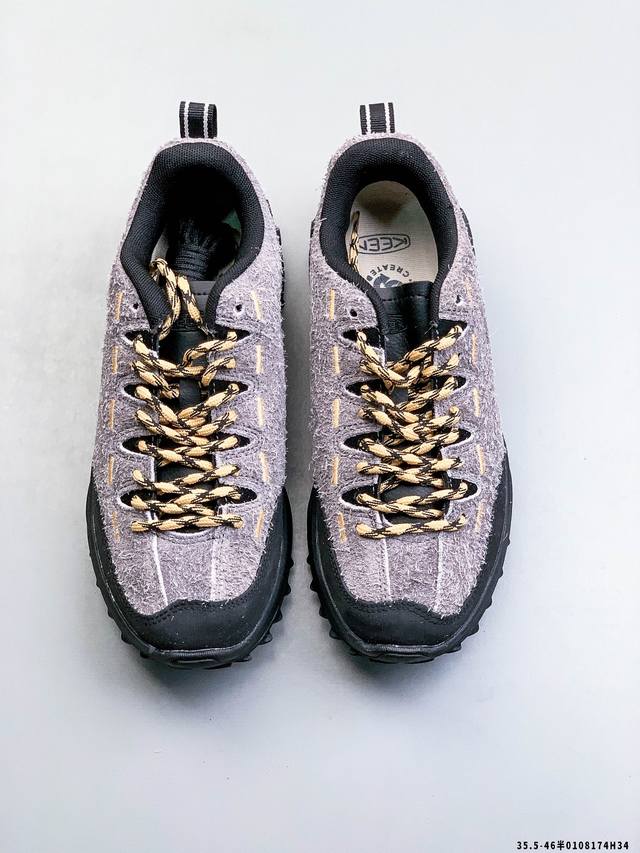 Keen Jasper II Men's and Women's Outdoor Mountain Comfortable and Durable Hiking Shoes DDD Keen introduces the Jasperhi, a combination of leather and breathable mesh that allows your feet to breathe freely, making it a must-have for every journey from the mountains to the streets DDD Upper: Leather and breathable mesh upper, heel counter, tongue extending to the toe, lacing system, breathable mesh lining, removable, elastic foam insole for cushioning DDD Midsole: Compression-molded foam midsole for cushioning DDD Outsole: Non-marking engineered rubber outsole, lightweight, flexible, and durable, multi-directional raised tread for traction DDD 0108174H34 DDD