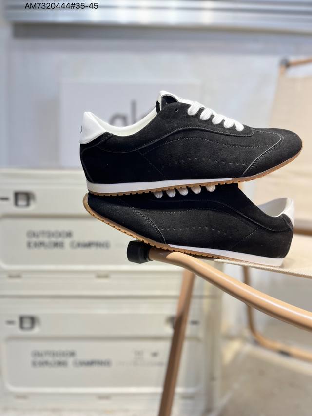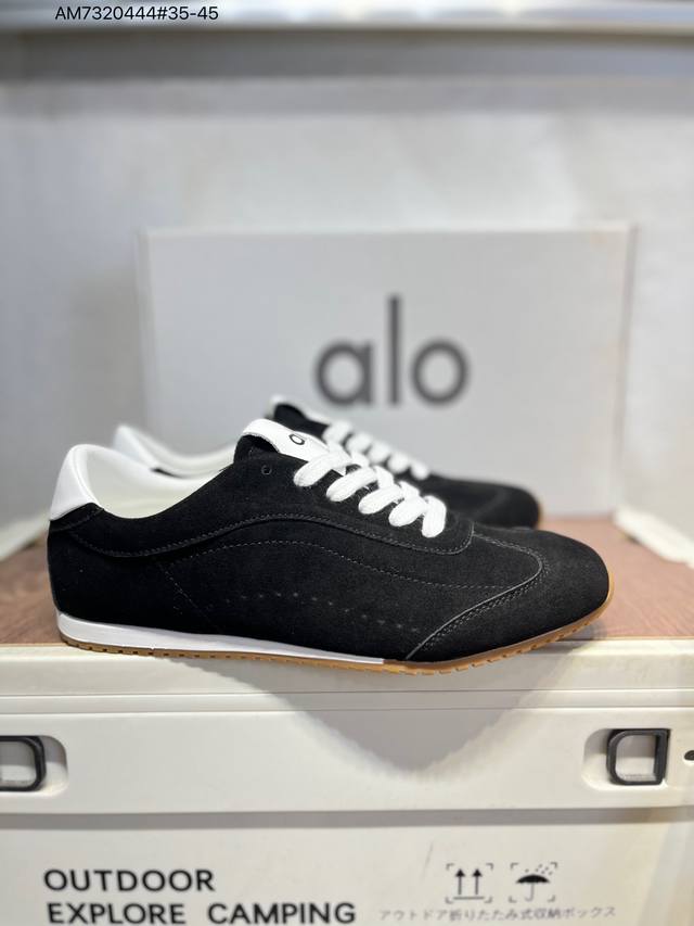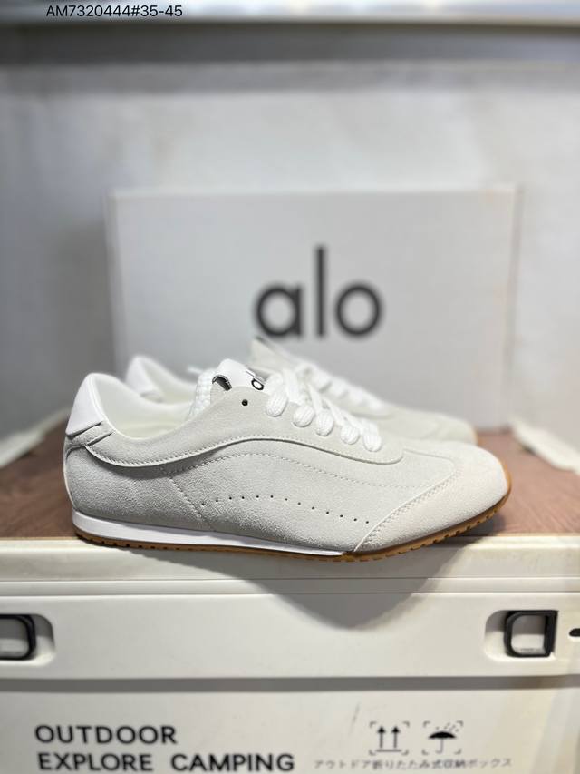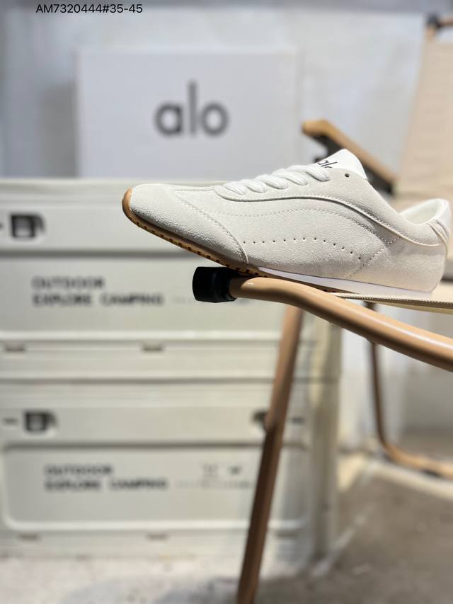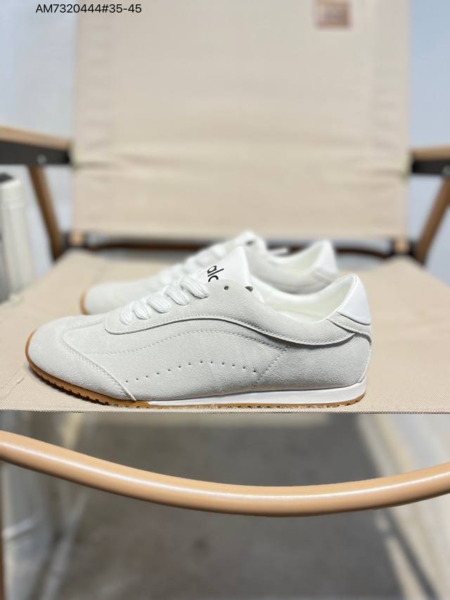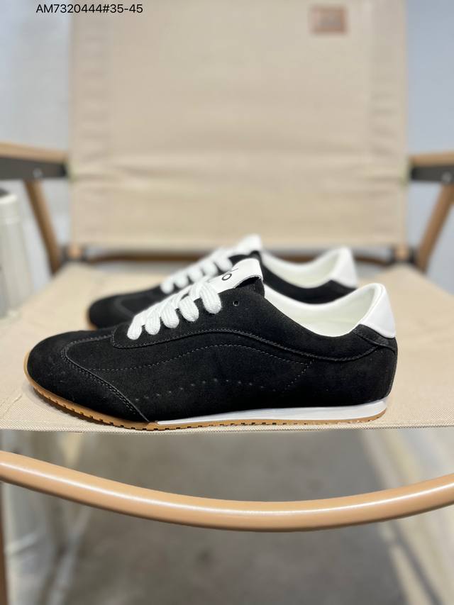 Lo Yogaalosunset New Sneakers, Suede Low-Top Thin-Soled Casual Shoes, Minimalist Style. These shoes feature a soft suede upper with a breathable lining and a cushioned sole, suitable for daily commutes or weekend outings. The brand primarily targets the Asian market, with its production and design team located in South Korea, emphasizing meticulous detail and a combination of seasonal trends. The upper is made of delicate suede, soft to the touch and with a premium feel. The light brown colorway is particularly versatile. The sole has a certain thickness but isn't bulky, offering a slight bouncy feel, like your feet are being gently supported. What I love most is the design detail: the slightly narrowed heel line makes the ankle appear longer, creating a stylish look when paired with skirts or jeans. A0891U A m7320444#35-45
