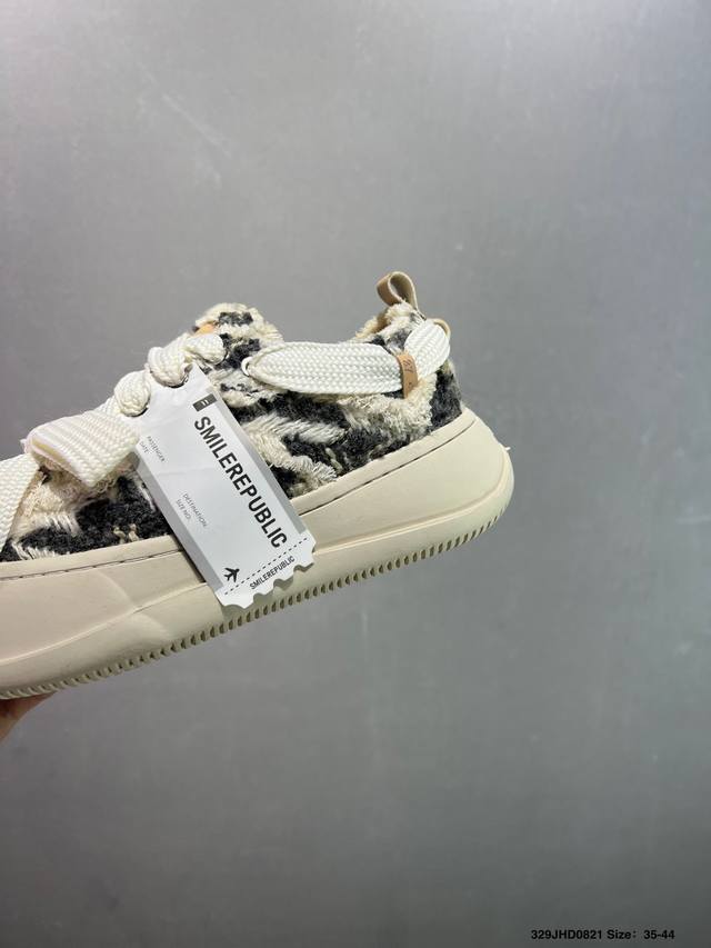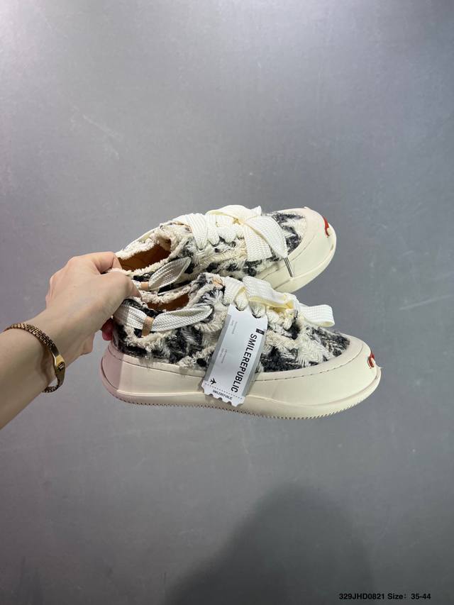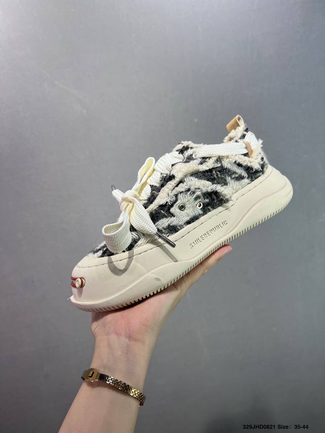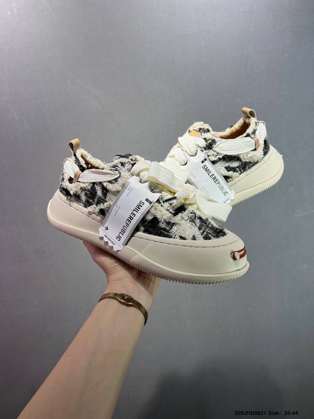 Made with original custom high-density canvas leather upper, ultra-soft water-dyed cowhide lining, injection-molded insole, and a 4cm height-increasing rubber sole. This is the same style worn by Xu Lu, Li Chen, and Tan Jianci. A new streetwear brand, Smilerepublic Canvas Mule Sneakers Low platform sneakers with thick soles, low-top reverse lace-up design, and a distressed look. Type: Men's and Women's Shoes. Sizes: 35 36 37 38 39 40 41 42 43 44. ID: 329Jhd0821
