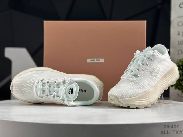 Miu Miu 25Ss Tyre Spring/Summer Newest Hot Item: A bold and avant-garde design, blending style with minimalist lines, a unique retro design, and adding iconic elements! This Tyre combines elegance with athletic functionality. The dynamic rubber sole is flexible and durable, reminiscent of tire treads. Besides adding to the shoe's retro appeal, the rubber sole also provides slip resistance. The upper is made of technical fabric and suede, fusing sport and fashion, function and elegance, expressing the core spirit of Miu Miu. Product Code: 5E912 Size: As shown in the picture. All Sizes