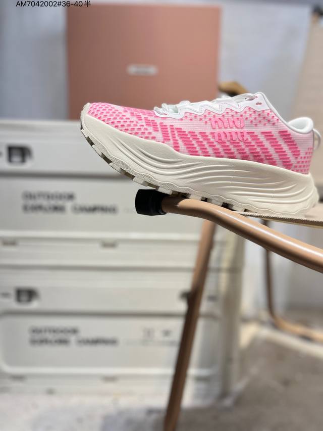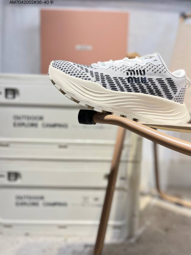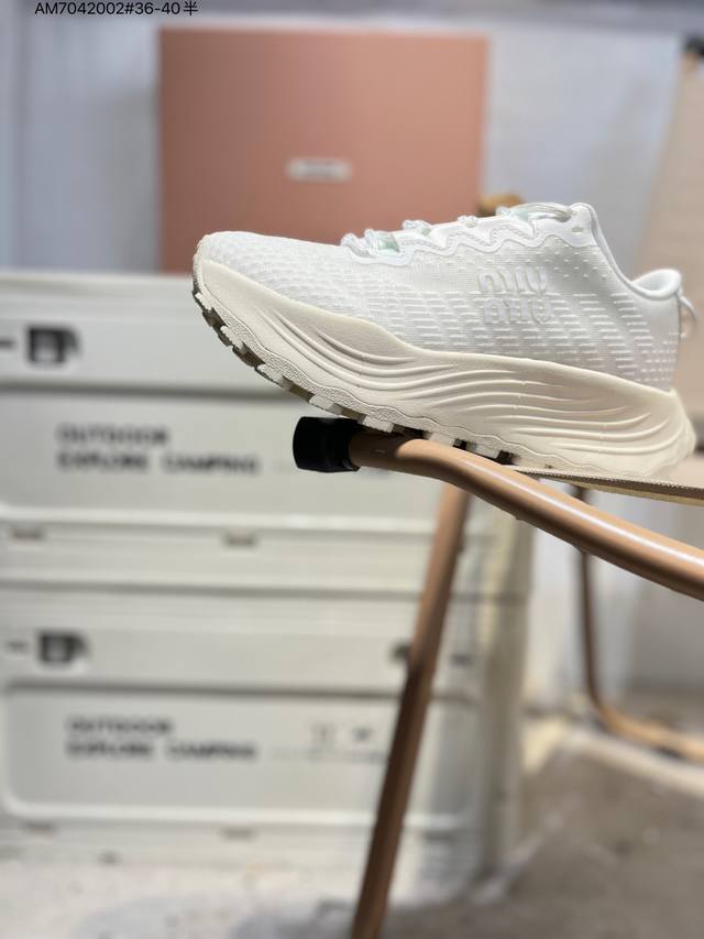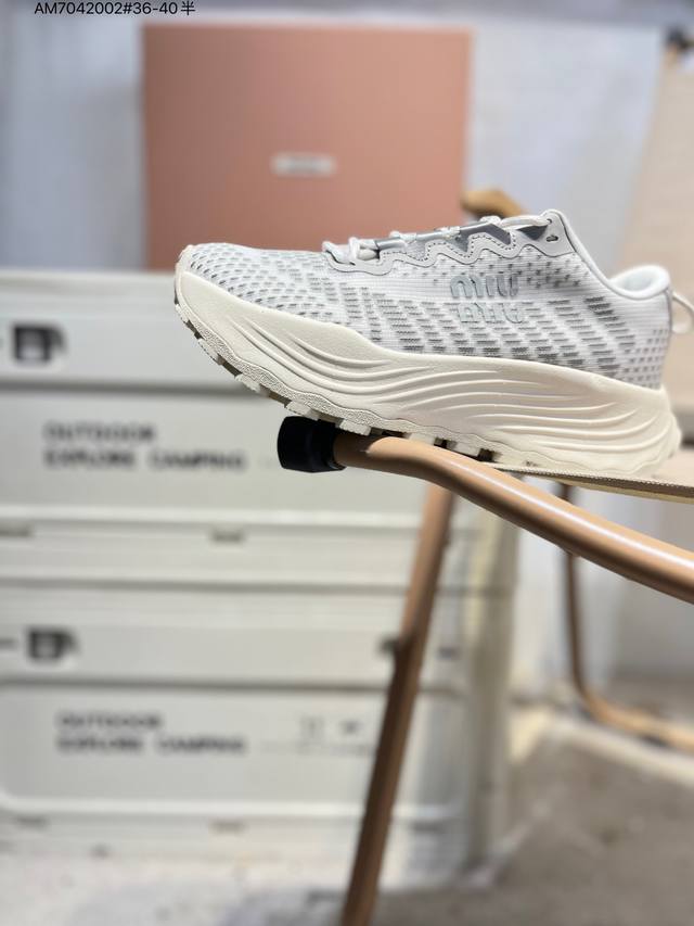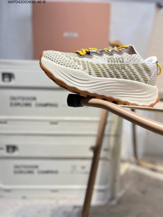 Miu Miu 25Ss Tyre Spring/Summer's latest hot-selling style. The avant-garde and bold design blends minimalist lines with a unique retro aesthetic, adding iconic elements! This Tyre combines elegance with athletic functionality. The dynamic rubber sole is flexible and durable, reminiscent of tire treads. Besides adding to the shoe's retro appeal, the rubber sole also enhances its anti-slip function. The upper is made of technical fabric and suede, fusing sportiness and fashion, function and elegance, expressing the core spirit of Miu Miu. 5E912D Am704 2#36-40 half