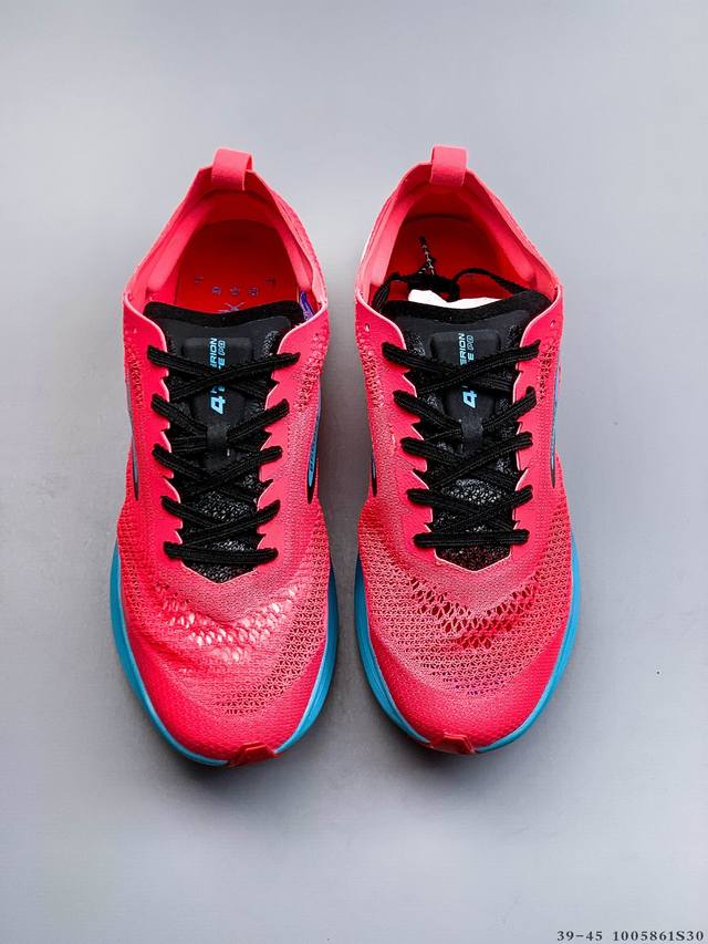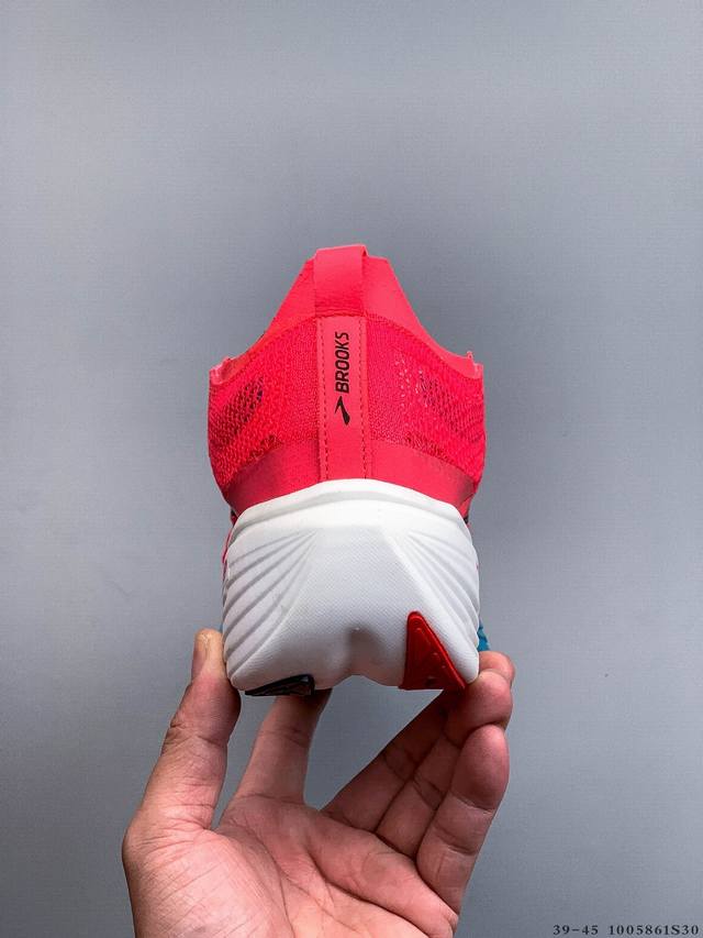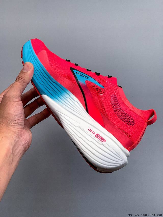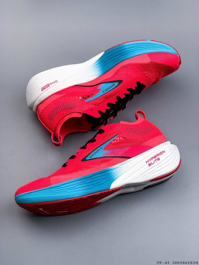 New Product: Exclusive Company-Grade Brooks Hyperion Elite 4Pb Carbon Plate Running Shoes - Chunky Shoes with Thick Sole, Height Increase, Cushioning, and Slow-Moving Design. The Brooks Hyperion Elite 4 utilizes a precision-woven high-density jacquard mesh technology, achieving dynamic support through a zoned weaving process. Different densities of yarn form a support structure in key areas such as the instep and arch, ensuring both lockdown during running and maintaining excellent breathability. The elasticity of the upper material allows even narrow-lasted shoes to accommodate medium-sized feet, while the velvet material at the heel solves the problem of chafing. In terms of the midsole, the Hyperion Elite 4 features a new Dna Gold nitrogen-infused foam midsole. This 100% Peba material significantly improves energy return while reducing weight by 11%. The midsole exhibits a dual characteristic of "soft and bouncy for slow running, and resilient and responsive for acceleration." During long-distance training, the forefoot's bouncy effect is clearly felt, while during interval training, it provides rapid ground contact feedback. In addition, the outsole features a Rapidroll Rocker wave-shaped midsole structure, combined with an 8mm slope design, effectively reducing energy loss during the gait cycle. (