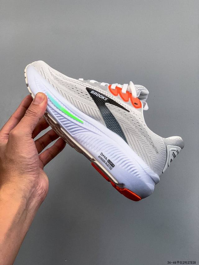 New Product Featured: Brooks Ghost 17, a high-quality, factory-grade shoe featuring a Dna Loft V3 nitrogen-infused supercritical true burst foam midsole for a balanced softness and bounce. Nitrogen injection creates a closed-loop airbag structure, improving cushioning performance by 30% and energy return efficiency by 10% compared to its predecessor. The upper uses a double-layer jacquard engineered mesh, with a high-density breathable mesh outer layer for quick sweat wicking and an elastic support frame inner layer for enhanced support. A 3D molded foam and TPU stabilizer in the heel form a dual-locking structure for reliable stability on complex terrain. Suitable for 5:30-6:30 km jogging paces, balancing cushioning and propulsion. Emphasizing "all-around cushioning," it's suitable for daily training and long-distance jogging. DDD 1129127J28 DDD