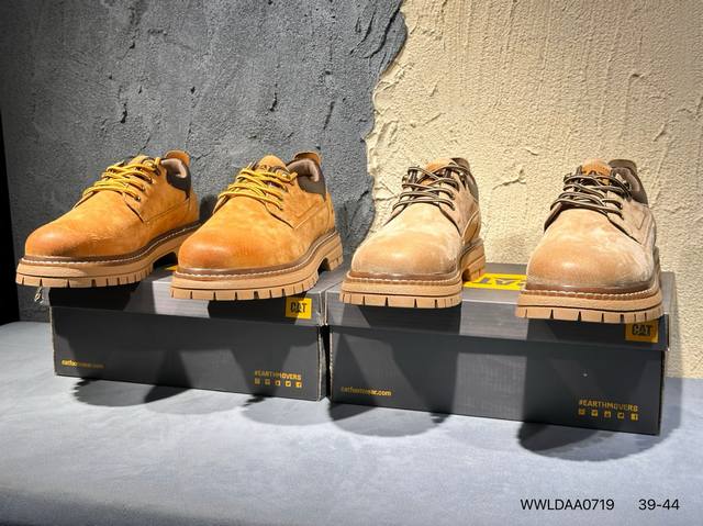 Cat Pure Original Guangdong factory new bulldozer casual and fashionable men's casual leather shoes, original quality, genuine label. Cat men's shoes from Guangdong Pure Original, a classic and popular model over the years. New top-layer cowhide, wear-resistant and non-slip rubber outsole, Goodyear craftsmanship, never debonds, durable and high-quality top-layer cowhide. Top-grade Cat men's shoes with genuine label. Wwldaa0719