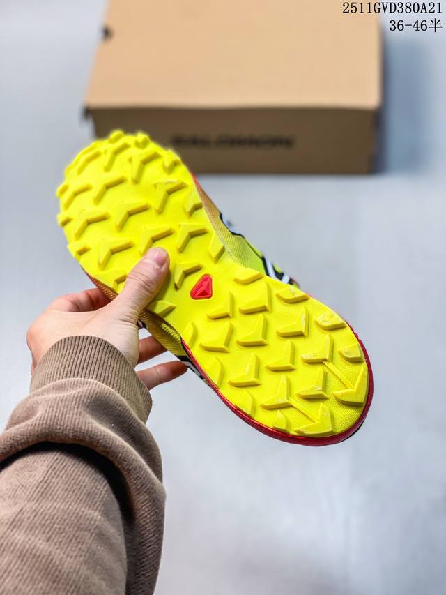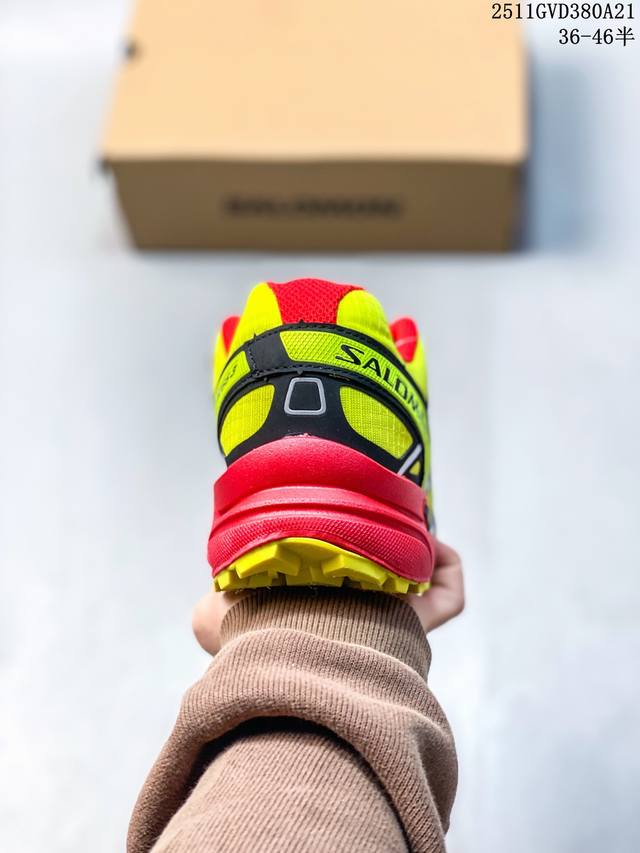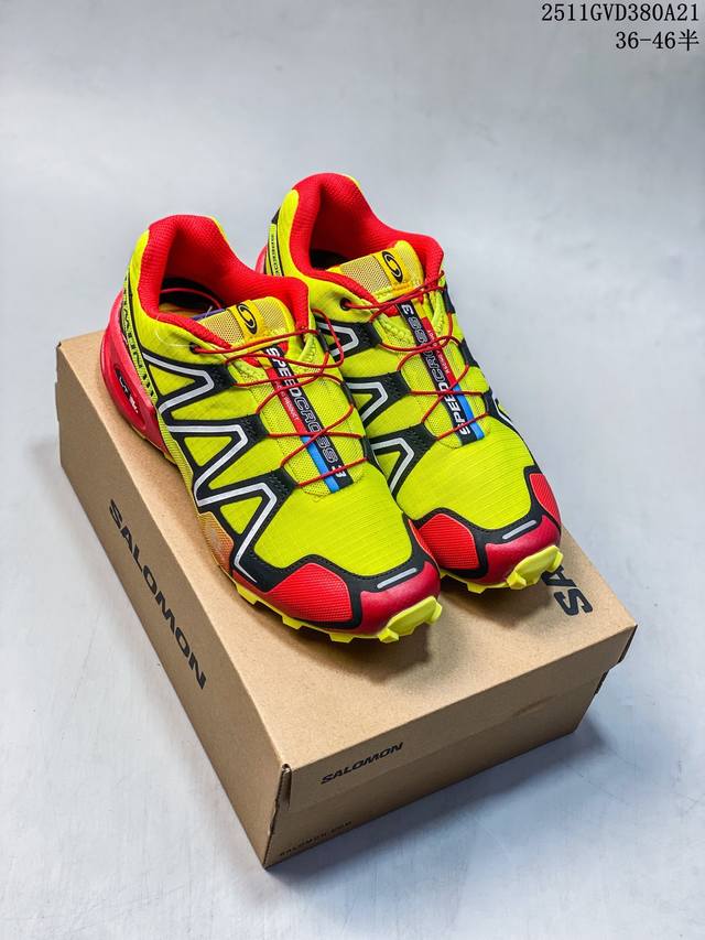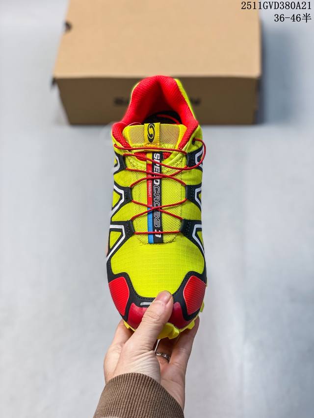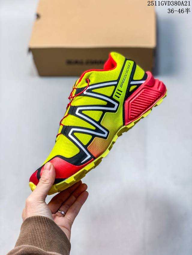 New Product: Salomon Speedcross 3 Cushioning Outdoor Fabric Support Waterproof Running Shoes. The Salomon Speedcross 3 is a sports shoe designed specifically for outdoor trail running, primarily suitable for hiking, camping, and light mountain climbing, combining functionality and style. Waterproof and Breathable: Utilizes GTX waterproof material, suitable for rainy or wet environments while maintaining breathability. Grip and Slip Resistance: The rubber outsole features a 3D serrated design, adaptable to both paved and unpaved surfaces, but caution is needed on wet, slippery surfaces. Lacing System: The pull-out lacing design simplifies the on/off process and reduces the hassle of undone laces. Support: The inner upper features a fabric wrap design with thick foam padding, enhancing heel stability and comfort. More suitable for light outdoor activities such as hiking and camping, rather than professional running. The midsole cushioning is insufficient, which may cause fatigue during prolonged running. DDD Sizes: 36-46 (including half sizes) DDD 11Gvd380A21 DDD