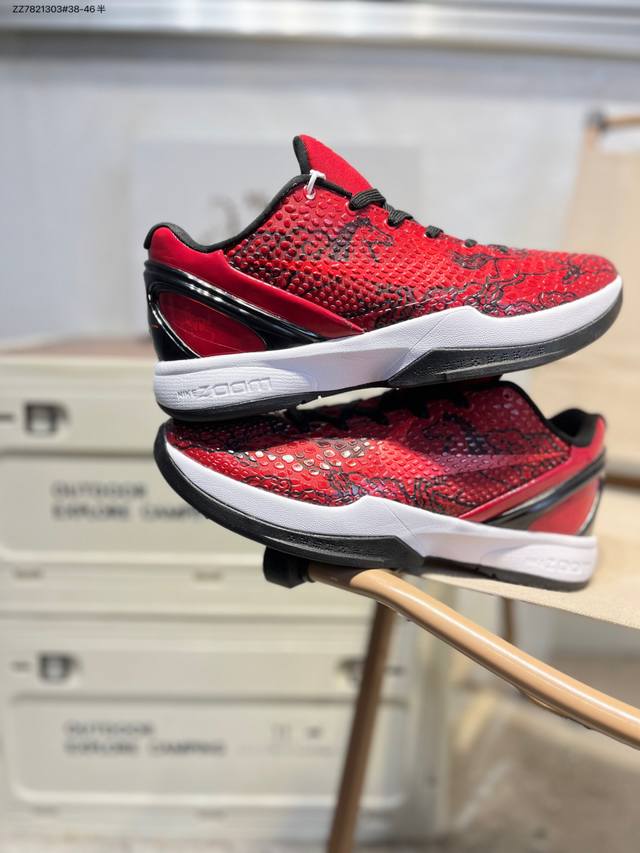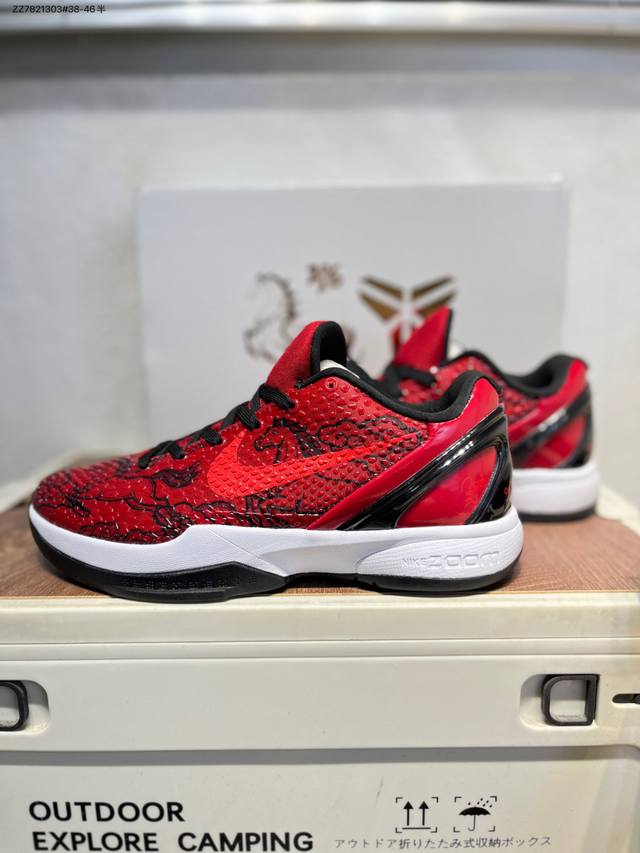 Nk Kobe 6 Protro Professional Basketball Shoes DDD The upper features a composite design: a breathable mesh inner layer, Fly Wire technology in the mid-layer, and a polyurethane island structure on the outer layer creating a realistic snakeskin pattern. This multi-layered upper structure provides better breathability and more targeted protection. A double-layer memory foam insole automatically adjusts to the player's foot shape for a better fit and a softer, more comfortable feel, giving players an exceptional court comfort experience. Cw2190 Zz7821303#38-46 Half DDD
