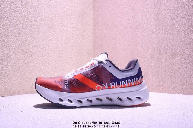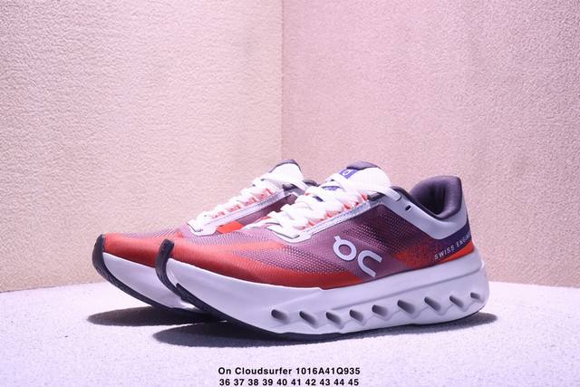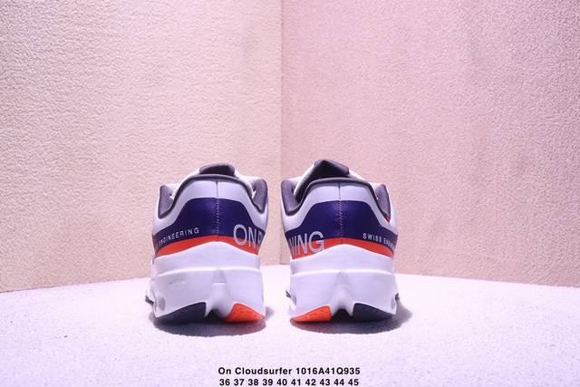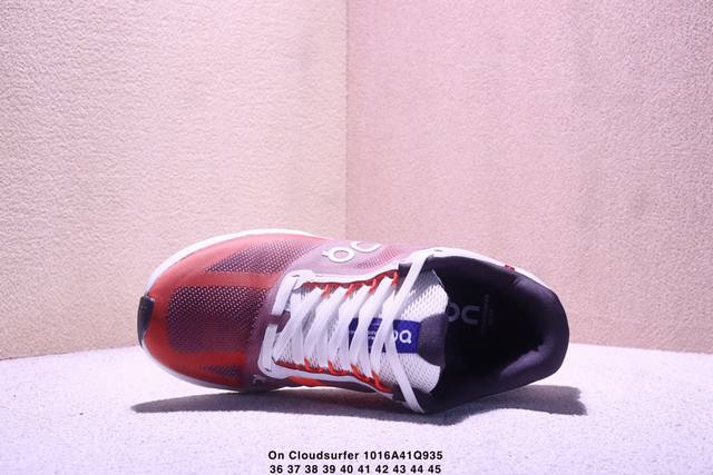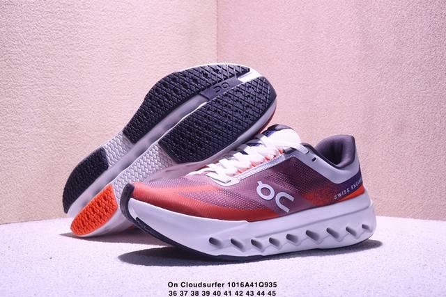 On Cloudsurfer Next, a company-grade, comfortable, versatile, minimalist, and durable low-top running shoe. The Cloudsurfer Next's design is inspired by On's professional racing shoes. The upper is made of engineered woven material for a seamless fit. The lightweight and breathable upper conforms to the foot, ensuring a comfortable fit and stable lockdown. The upgraded rubber padding on the sole provides high grip and durability in both dry and wet conditions. (