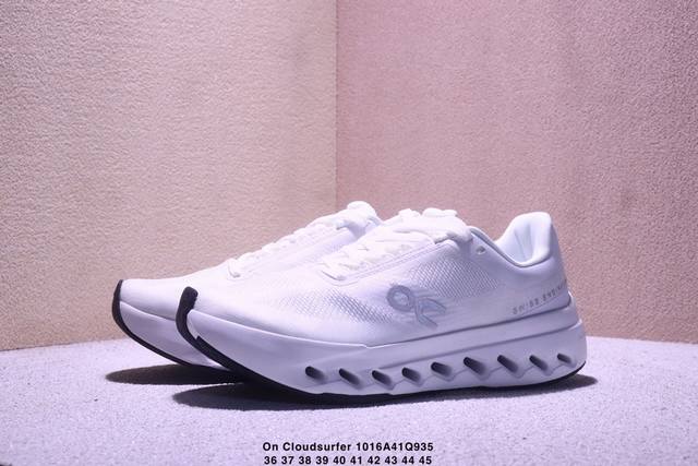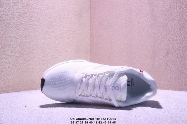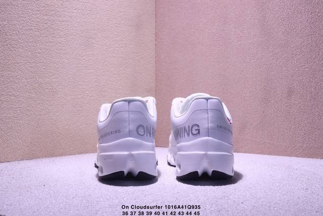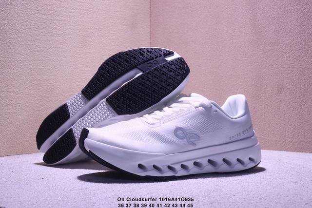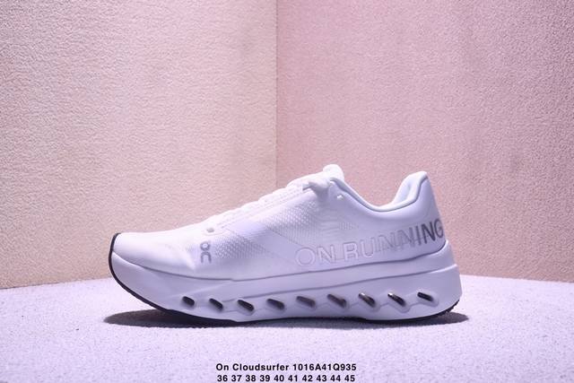 On Cloudsurfer Next, a company-grade, comfortable, versatile, minimalist, and durable low-top running shoe. The Cloudsurfer Next's design is inspired by On's professional racing shoes. The upper is made of engineered woven material for a seamless fit. The lightweight and breathable upper conforms to the foot, ensuring a comfortable fit and stable lockdown. The upgraded rubber padding on the sole provides high grip and durability in both dry and wet conditions. (
