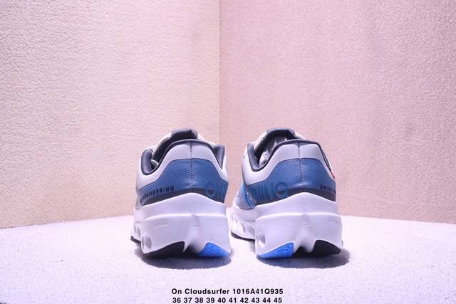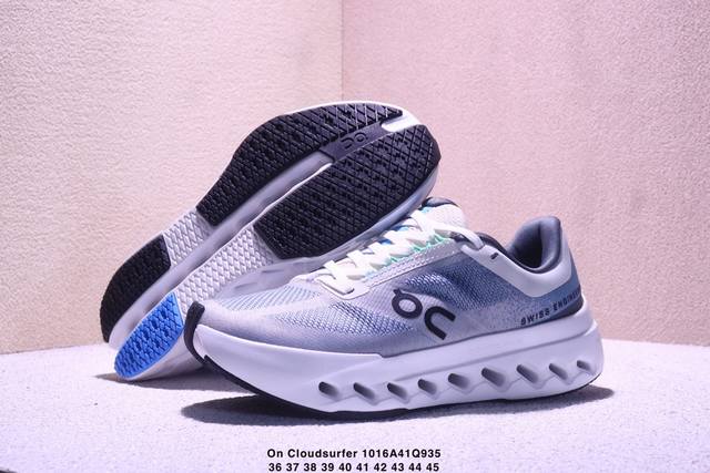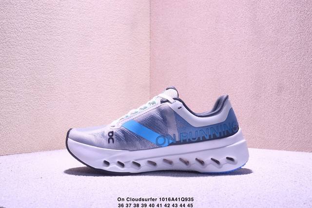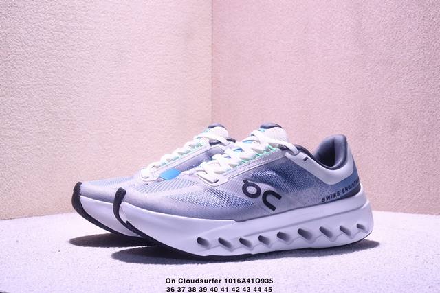 On Cloudsurfer Next, a company-grade, comfortable, versatile, minimalist, and durable low-top running shoe. The Cloudsurfer Next's design is inspired by On's professional racing shoes. The upper is made of engineered woven material for a seamless fit. The lightweight and breathable upper conforms to the foot, ensuring a comfortable fit and stable lockdown. The upgraded rubber padding on the sole provides high grip and durability in both dry and wet conditions. (