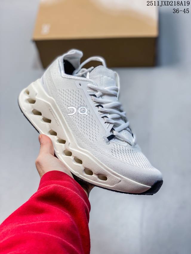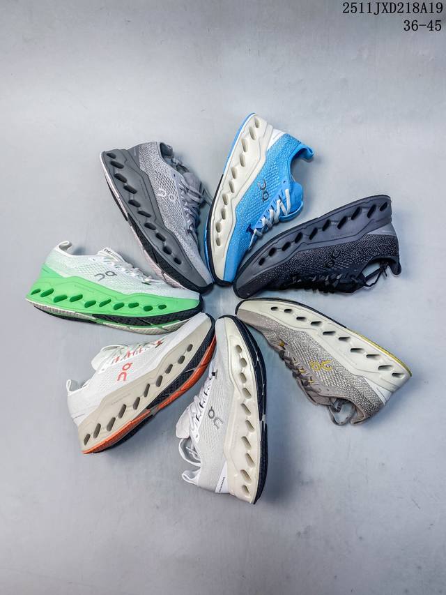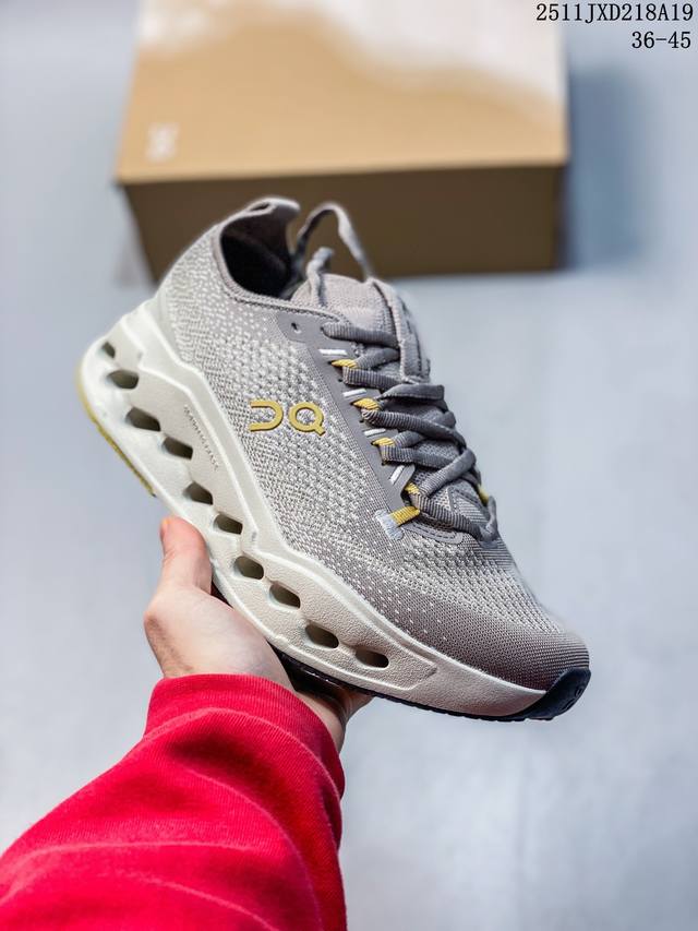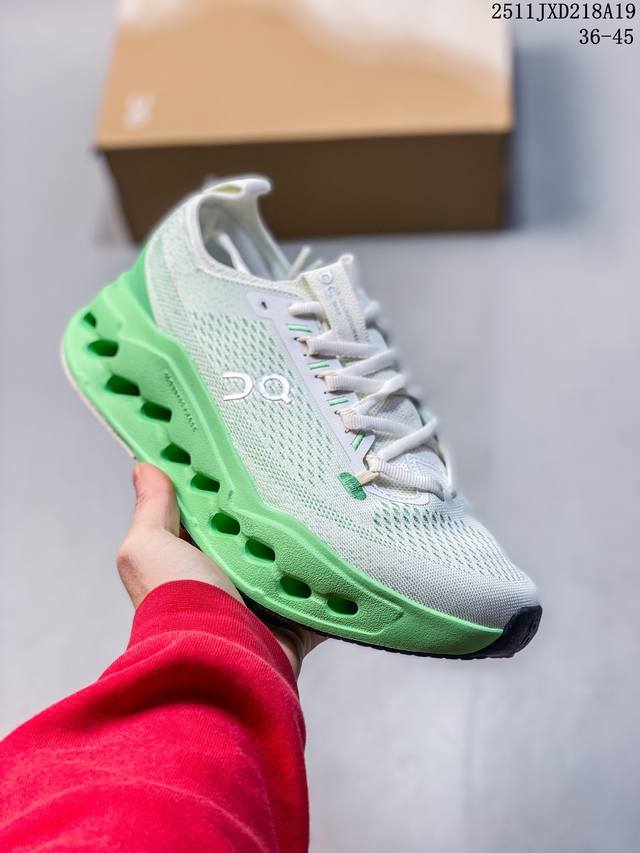 On Cloudsurfer Trail 2 Couple's Outdoor Streetwear Functional Running Shoes. Embark on a new urban exploration journey with the Cloudtec patented technology sole featuring a temperature-resistant and durable innovative midsole foam, while boasting a rocker-chair-like, functional silhouette. This provides a smooth and stable stride. The lightweight and breathable engineered mesh combined with eco-friendly synthetic suede creates a vibrant and eye-catching visual effect. TPU lace buckles adorned with the brand logo offer a unique lacing method. DDD 11Jxd248A19 DDD
