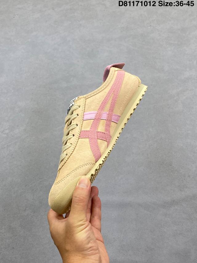Onitsuka Tiger Mexico 66, a versatile sneaker. The Mexico 66 is Onitsuka Tiger's most classic model, and Bruce Lee's favorite training and casual shoe! The distinctive tiger claw logo on the shoe makes it highly recognizable! It's also endorsed by idol stars like Li Yuchun, becoming an increasingly popular casual shoe choice. Product Code: 1183C380-200 Sizes: 36 37 38 39 40 41.5 42 43.5 44 45 D81171012
