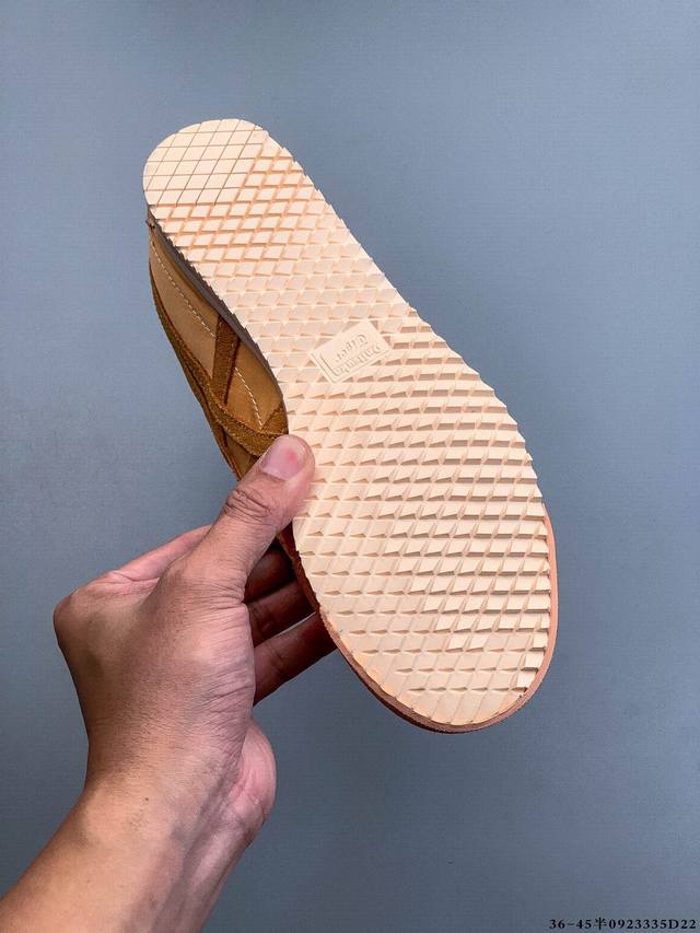 The Mexico 66 Sd retains the signature design elements of the classic Mexico 66, such as the Onitsuka Tiger claw pattern, thin sole, and cross-heel strap, highlighting the Onitsuka Tiger brand and its illustrious history. Soft, elegant leather creates a refined silhouette and further enhances comfort. Thin laces and metal eyelets also add an elegant touch.