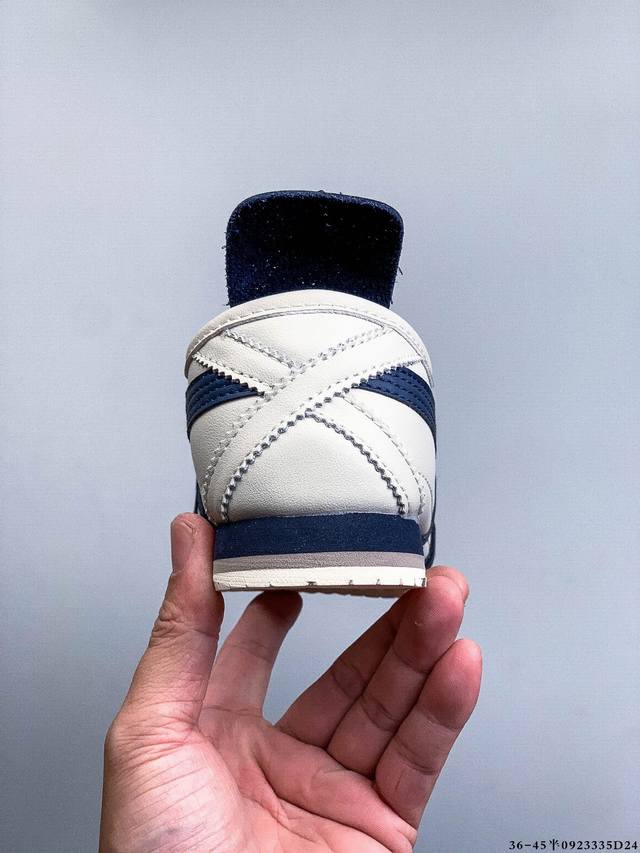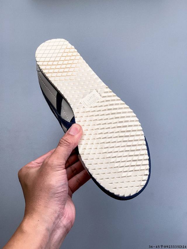 The Mexico 66 Sd retains the signature design elements of the classic Mexico 66, such as the Onitsuka Tiger claw pattern, thin sole, and cross-heel strap, highlighting the Onitsuka Tiger brand and its illustrious history. Soft, elegant leather creates a refined silhouette and further enhances comfort. Thin laces and metal eyelets also add an elegant touch.