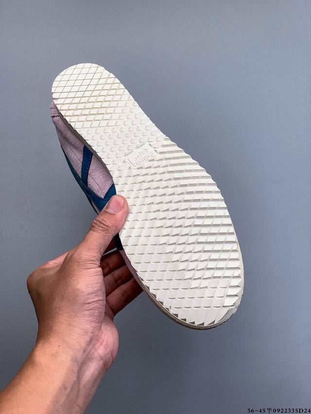 The Mexico 66 Sd retains the signature design elements of the classic Mexico 66, such as the Onitsuka Tiger claw pattern, thin sole, and cross-heel strap, highlighting the Onitsuka Tiger brand and its illustrious history. Soft, elegant leather creates a refined silhouette and further enhances comfort. Thin laces and metal eyelets also add an elegant touch.