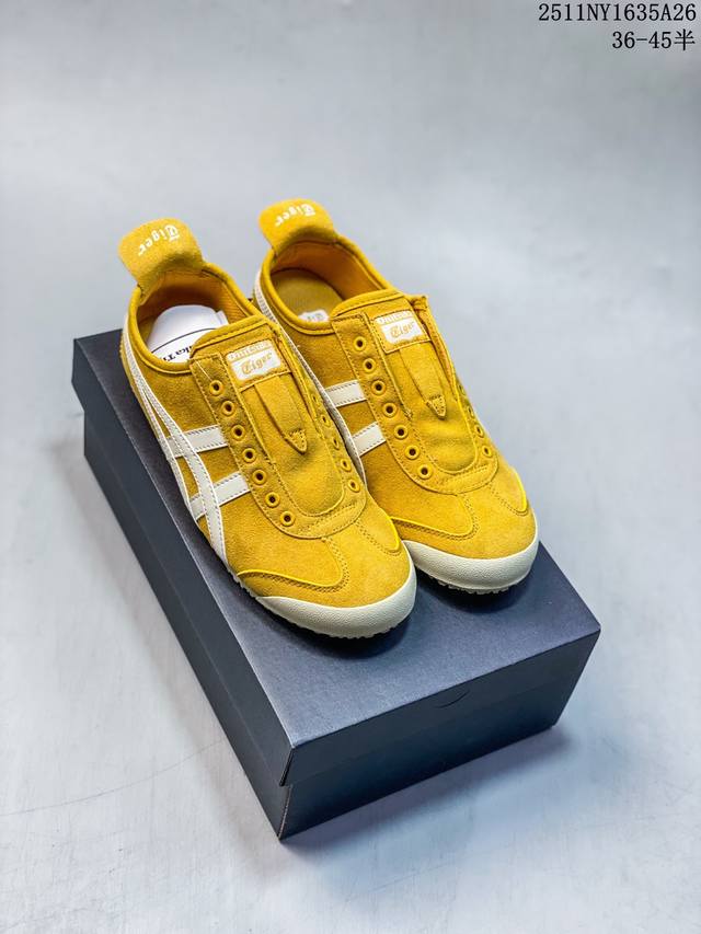 Onitsuka Tiger Mexico 66 Slip-On Synthetic Leather Round Toe Lace-up Non-slip Wear-resistant Warm Low-top Casual Shoes Unisex Fleece Lined Beige 36-45 Half DDD 11Ny1635A26 DDD