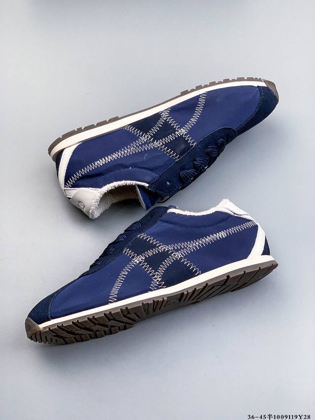 Onitsukatiger's new Tiger Corsair A55 shoe, a limited edition for Onitsukatiger's 75th anniversary, is inspired by the classic Tiger Corsair, a pioneer of the 1970s jogging craze. It presents a modern perspective with a minimalist silhouette and finely stitched stripes, perfectly complementing the brand's signature heel pull tab and cross reinforcement. A fresh interpretation of classic beauty, the lightweight upper is paired with a slim sole for excellent cushioning, achieving a perfect balance between comfort and style. 1009119Y28