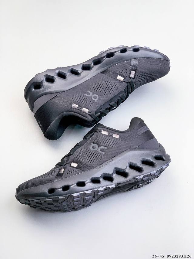 On's Cloudsurfer 2 is a cushioned, breathable, and lightweight casual running shoe. The new Cloudsurfer 2 features Cloudtec phase sole technology, further optimizing the soft and comfortable feel of the previous generation. Interlocking midsole modules, arranged like dominoes, roll seamlessly during movement, ensuring a stable stride and smooth transitions. Fea-optimized outsole for exceptional durability. On's outsole utilizes Fea, a finite element analysis technique widely used in aerospace, in its innovative application. Through over a thousand precise computer calculations and tests, the outsole geometry is optimized, resulting in a smooth transition from forefoot to heel and superior durability. A meticulously optimized tread pattern, with narrower tread gaps and thicker padding, enhances the shoe's wear resistance and slip resistance, allowing runners to easily navigate challenging terrain.