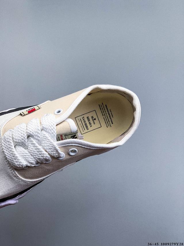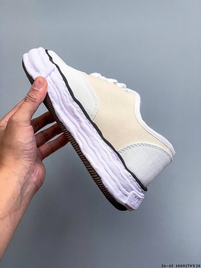 , a favorite item of Shawn Yue, featuring a retro melting style, Japanese concept fashion designer Mihara Yasuhiro's deformed melting ice cream sole, low-top casual versatile canvas shoes for men and women. Made in Guangdong, using the original last and paper pattern. Newly developed last design, dual-mold one-time foaming, with air holes, EVA midsole, embedded Rb rubber outsole, and clear woven label and packaging box. Double-layer eyelet with plating on the heel. Rust-free and paint-resistant. Distinguishing it from other market versions.