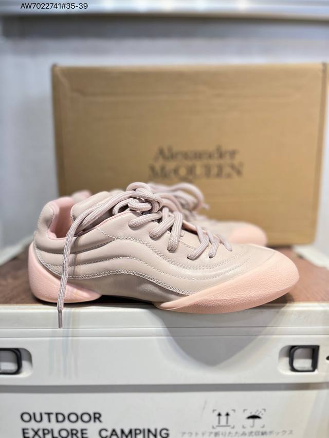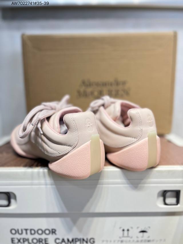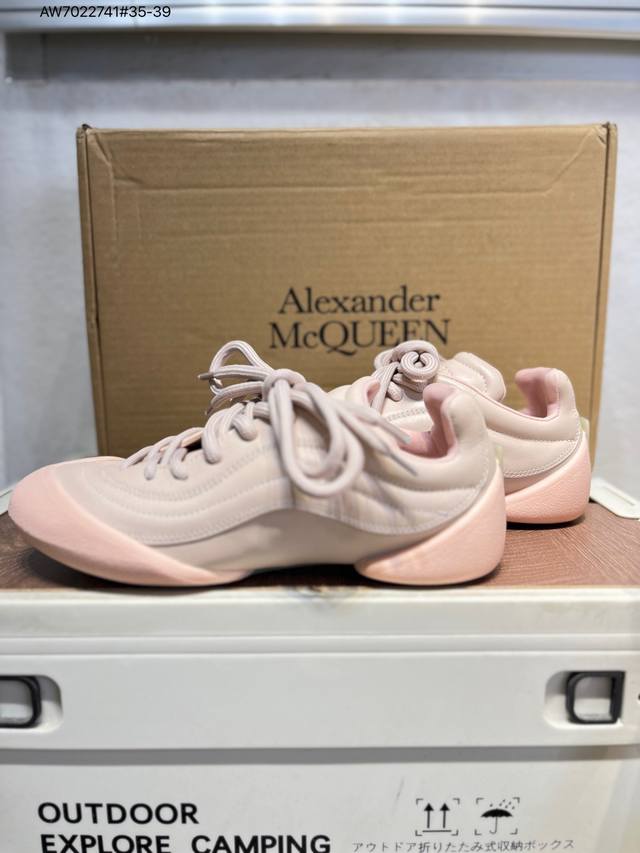 Alexander McQueen S Flexion retro sneakers are inspired by anatomy. The split sole and tendon-like elements reflect the brand's early design themes. Made of grained leather, they feature laces of different sizes and a lightweight split sole inspired by the anatomy of the foot itself, making them lightweight and soft. The sneakers have an embossed inverted skull decoration on the heel, giving them a very climbing feel. The simple and understated design can be paired with ready-to-wear collections for a versatile look. Custom calfskin material with trendy elements. Alexander McQueen X Dongliang's first collaboration, designed by the brand's current creative director Sean McGirr. Aw7022741#35-39