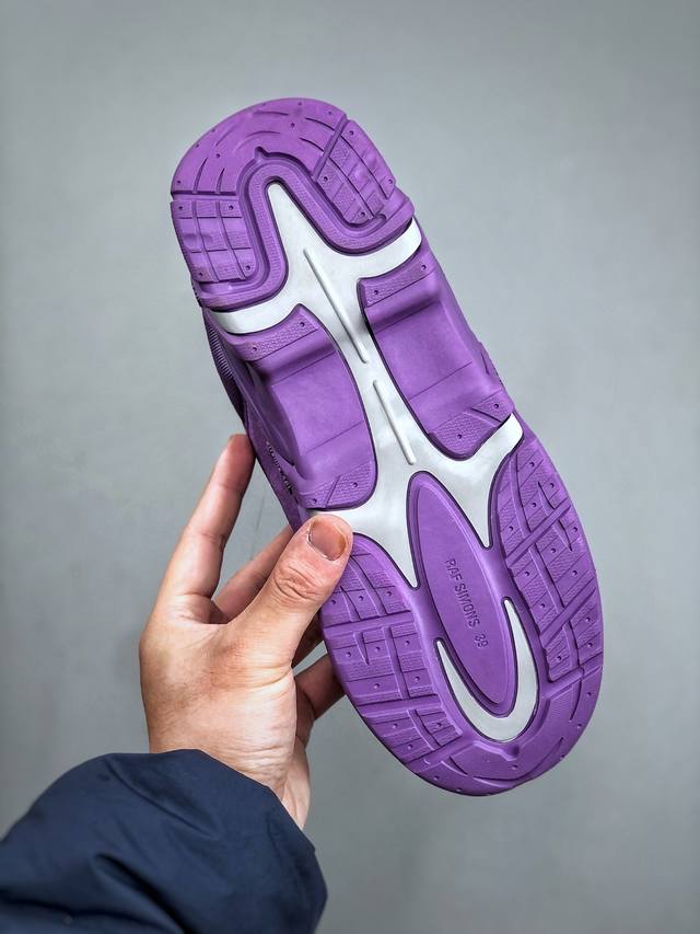 Raf Simons Cylon-21 Trendy Sporty Round Toe Lace-up Low-top Casual Shoes are made of smooth leather, mesh, and suede with rubber details. They feature a lace-up closure, round toe, fabric lining, and a rubber sole with an embossed logo. Printed details on the tongue and interchangeable plastic hardware at the heel complete the design. Sizes: 37-41 DDD