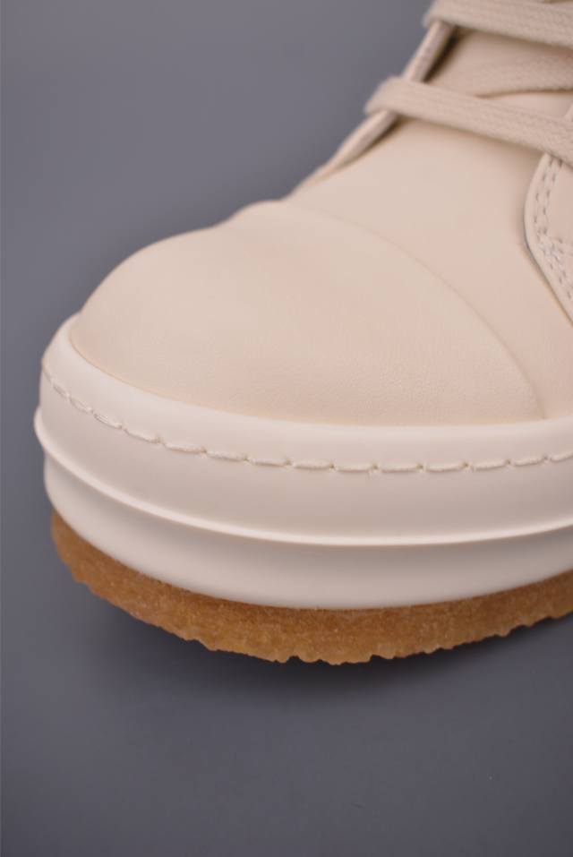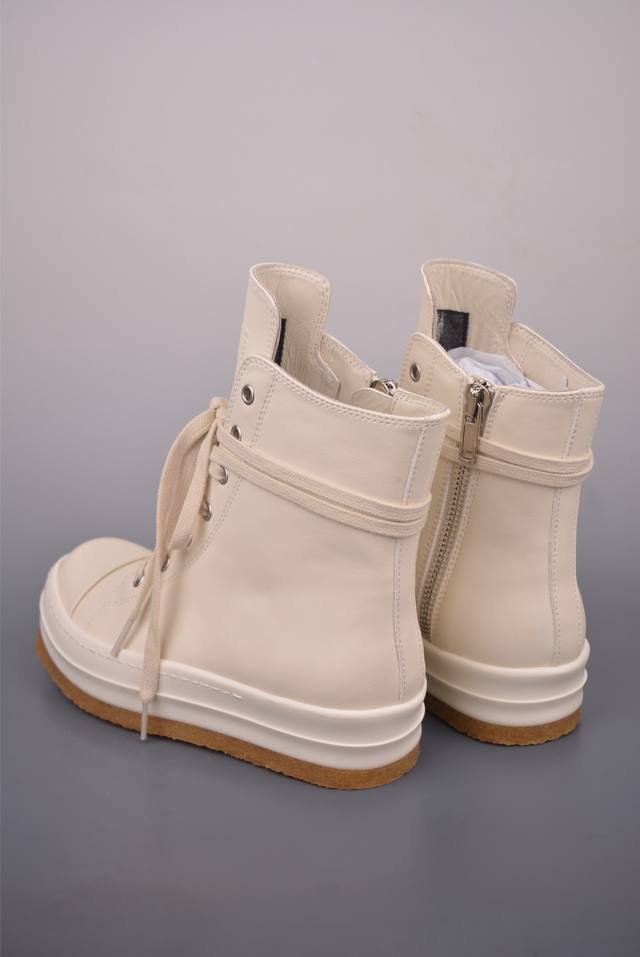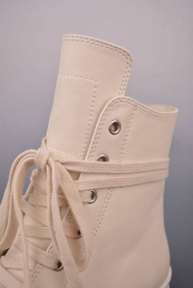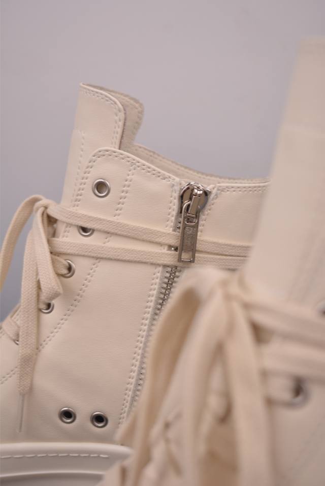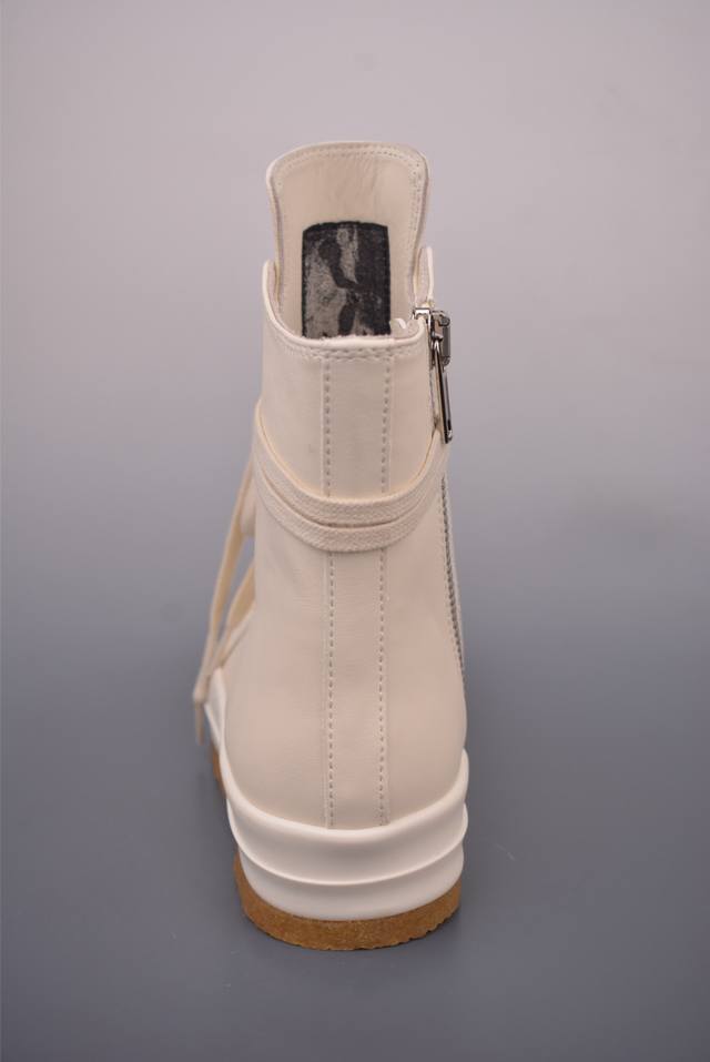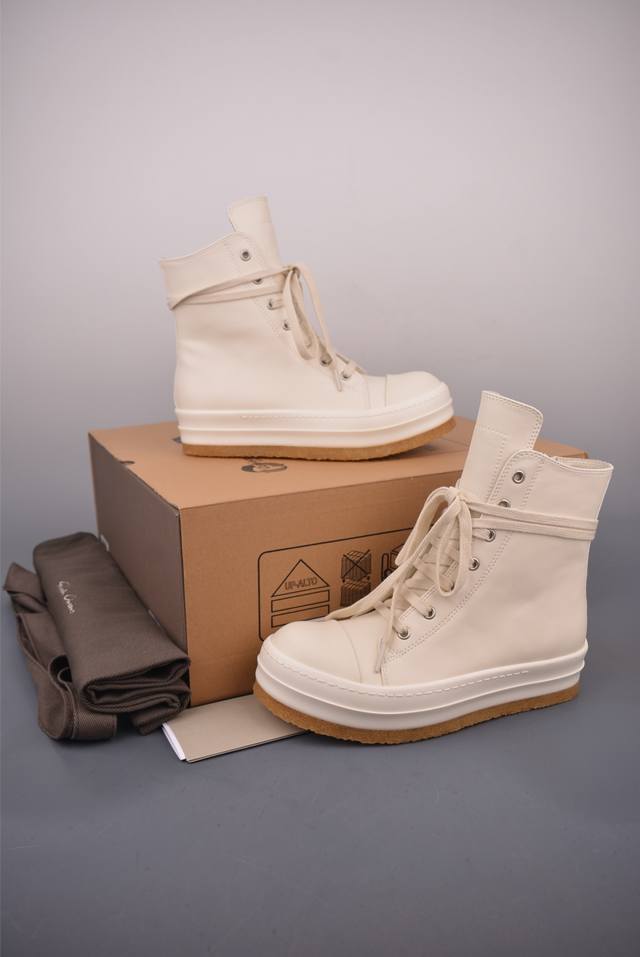 Rickowens Owens High-Top Shoe with Tumbled Grain Texture and Top Layer, Guangdong Original Version. Classic and versatile color scheme, unique inverted triangle and long tongue design, ultimate dark style. Water-dyed grain calfskin material and stitch spacing are perfectly replicated. Top-grade top-layer calfskin with an unparalleled luxury feel. Custom-made brand logo zipper. 6cm super thick sole, exuding a high-end feel. 1:1 replica gift box, weighing over 3 catties, plus a custom protective box! Includes bilingual accessory cards in Japanese and English! Attention to detail, nothing is overlooked. While the flip-top shoe box doesn't increase the actual cost, it reflects meticulous attention to detail, replicating even the smallest aspects of the product!