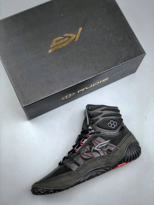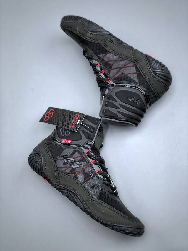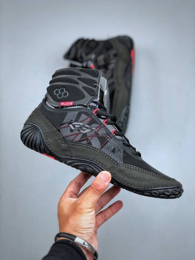 Rudis Ks Infinity Edge, the same style worn by Kels & Ned, is an indoor fitness, combat, wrestling, weightlifting, squatting, professional running shoe with shock absorption and high-top cushioning. Sizes: 35-44 DDD