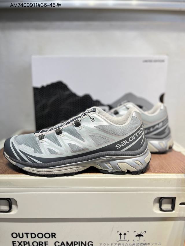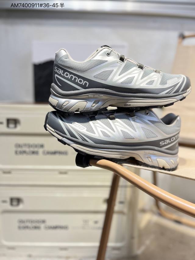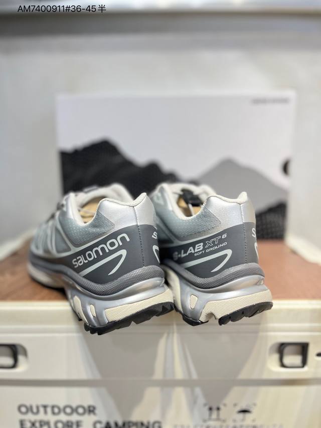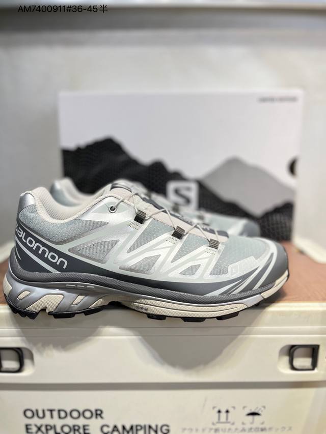 Salomon men's and women's shoes, authentic label, half-size system, original last and paper pattern development, high-performance structure upper for stable support, horn buckle lacing, Osole eco-friendly deodorizing ring-shaped combination insole, external three-layer double-layer combination rubber Acs technology all-terrain serrated anti-slip outsole. New autumn/winter colorways officially launched. French outdoor brand - Salomon XT-6 Cement Silver Sky series low-top urban off-road functional breathable casual sports shoes "Cement Grey Silver 417169 Am7400911 #36-45 half-size