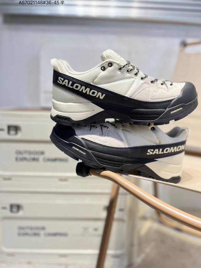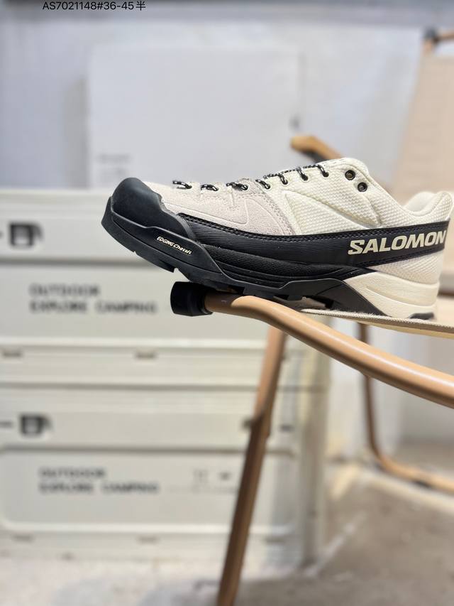 Salomon Mim6 x Salomon X-Alp Outdoor Casual Sneakers. The new Mim6 x Salomon X-Alp retains the original silhouette and shape of the shoe, relying on key design features such as thick rubber toe protection, a swooping midfoot overlay, and Contagrip tread pattern. The black and white version has a more eye-catching color scheme and more fashionable lines, while the all-black version is more understated and timeless, making it a good choice in this collaboration. 475361 As7021148# 36-45 Half