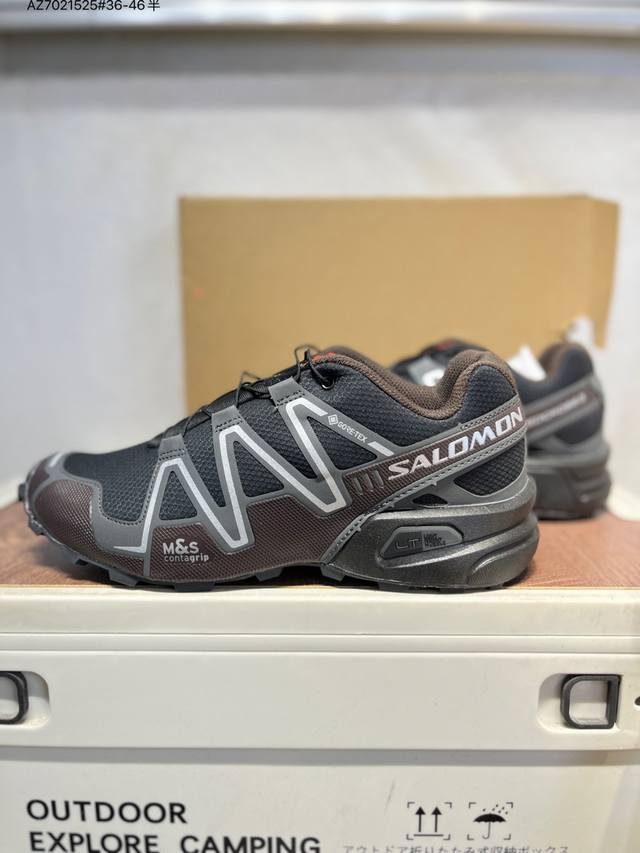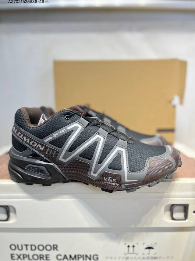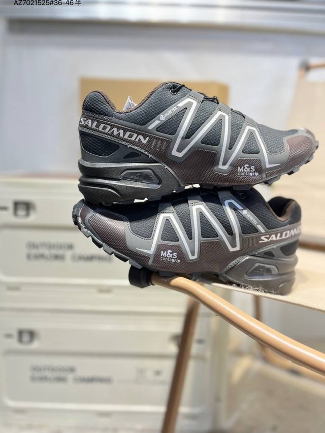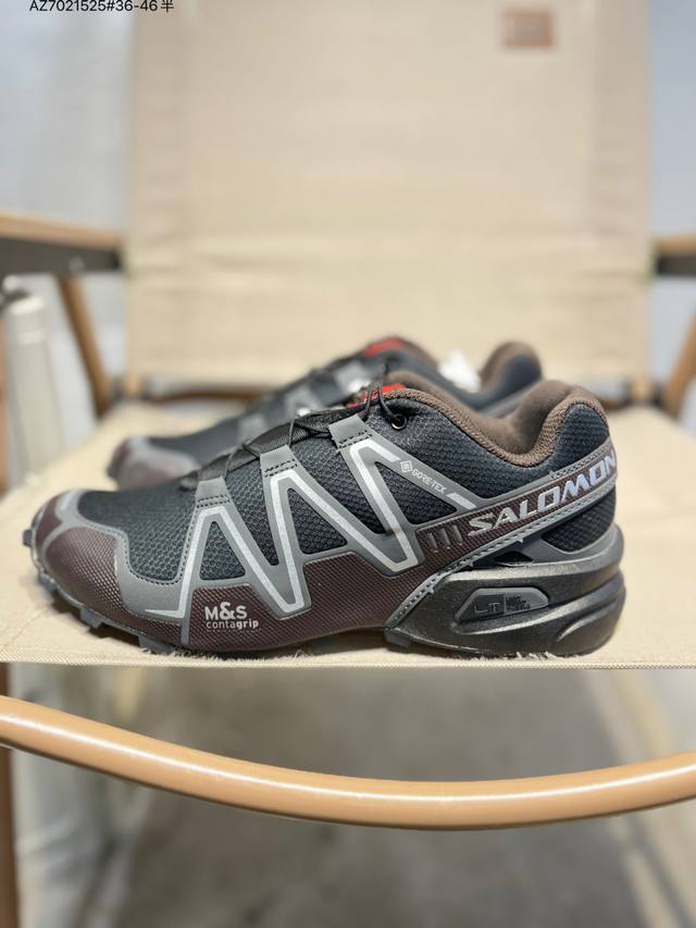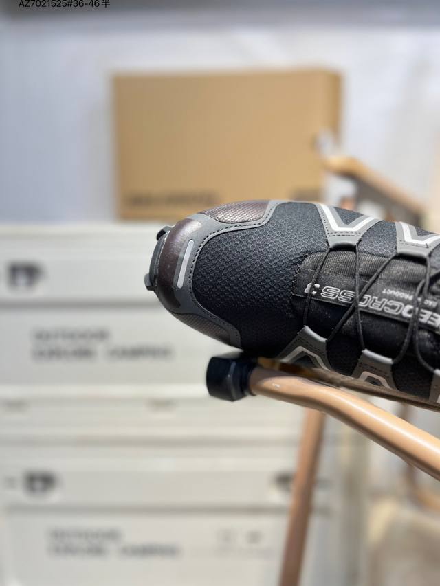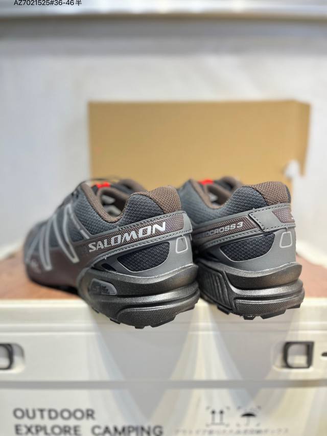 Salomon Speed Cross 3 Fabric & Leather Low-Top All-Round Off-Road Breathable Casual Sneakers. Salomon officially launches its new concept shoe, the Speedcross Ddd, which blends aggressive design with avant-garde outdoor aesthetics to create a running shoe silhouette that traverses mountains and cities. The Ddd features an upper made of a mix of mesh fabric and leather, with leather details enhancing the visual impact. The overall design features a claw-mark pattern on the upper and a streamlined silhouette, presenting a highly recognizable exaggerated outsole design that adds height while providing comfort and slip resistance suitable for urban environments. Functionally, the 3D open mesh upper maximizes breathability, while synthetic materials provide great durability and protection for outdoor wear. Thanks to Salomon's multiple functional technologies, from the midsole to the lacing system, the shoe provides a safe and comfortable fit and excellent grip on loose, soft, rugged, and uneven terrain. 476002 Az7021525#36-46 Half Ddd