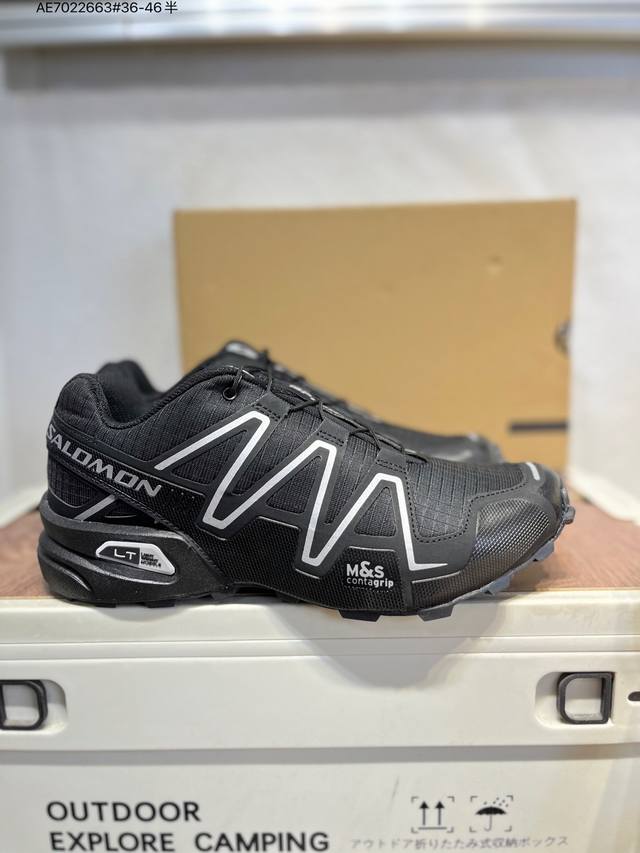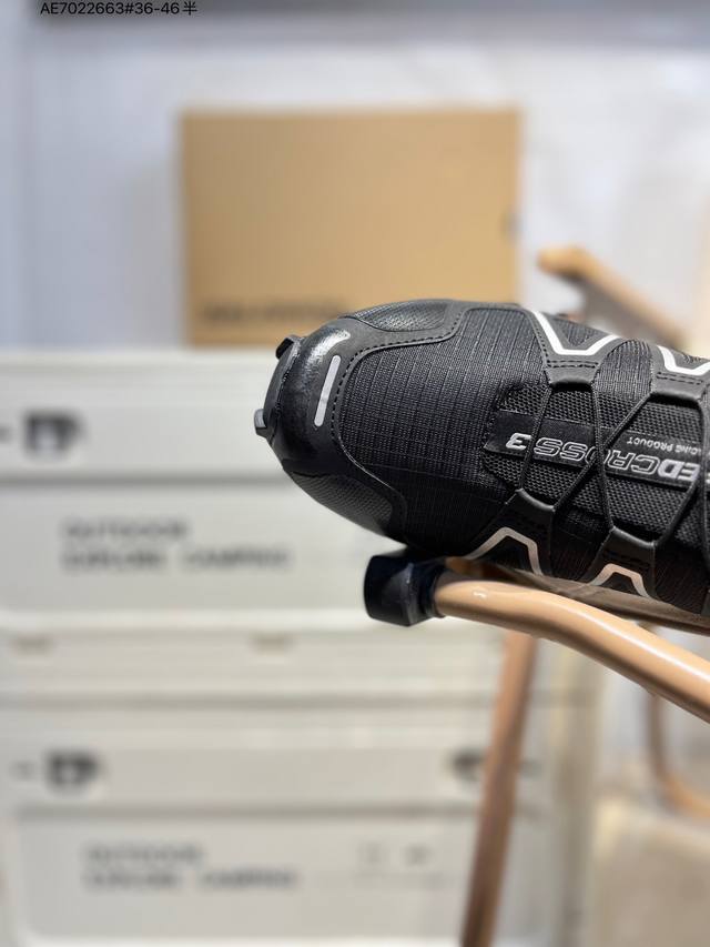 Salomon Speedcross 3 Outdoor Trail Running Shoes# The upper features Sensifit technology for a full-body fit and wrap around the foot. The heel and outsole traction design provide strong grip, making them more suitable for rugged trails. The lightweight 3D Advanced Chassis chassis material and maximized spike design offer enhanced stability and protection. The outsole uses Contagrip high-abrasion-resistant material in high-wear areas to withstand long-distance running on hard urban surfaces. 475880 Ae7022663# 36-46 Half